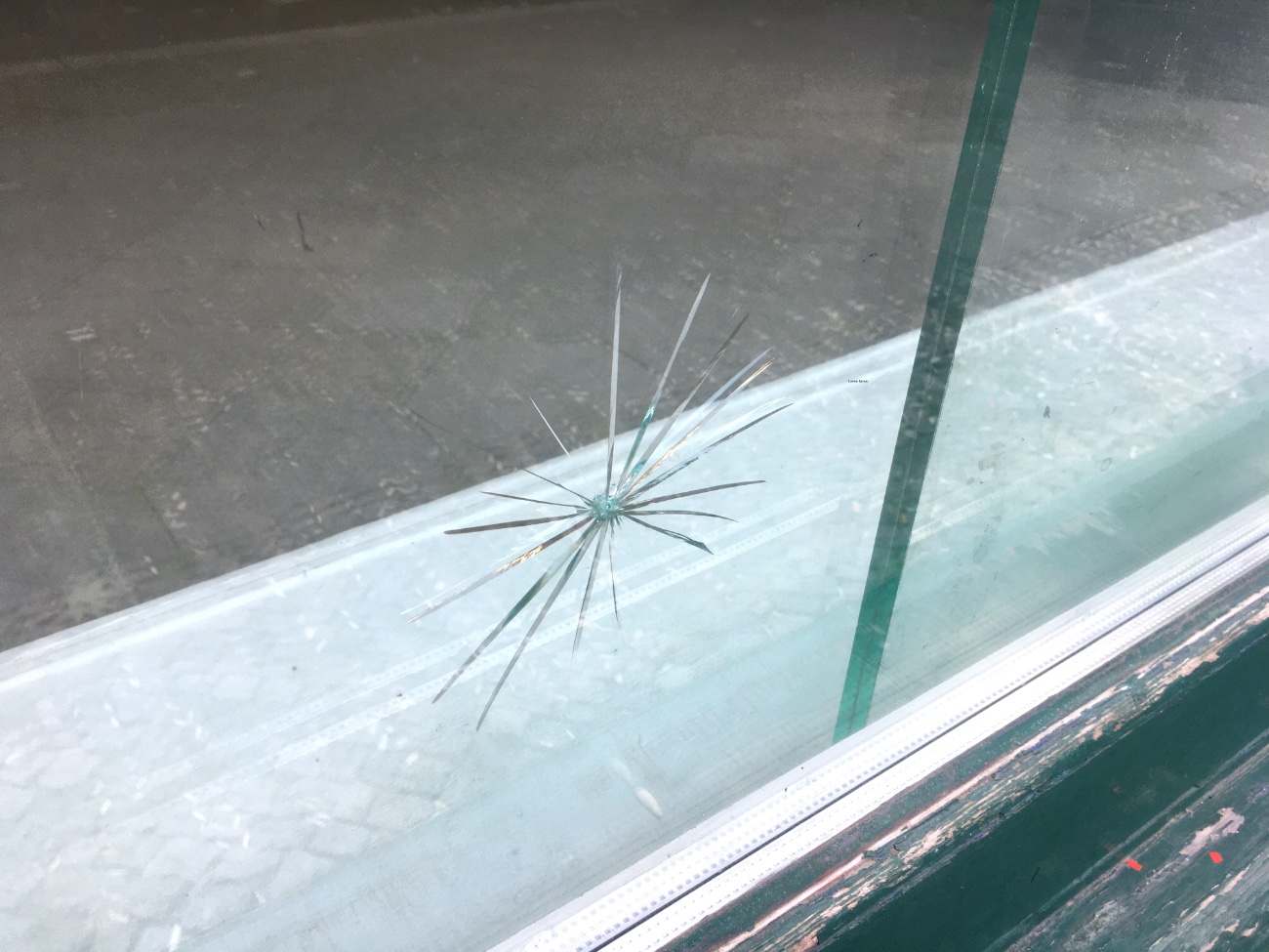 a broken windows theory, Julie Sas, 2020 : broken glass, paper, ink, dimension variable