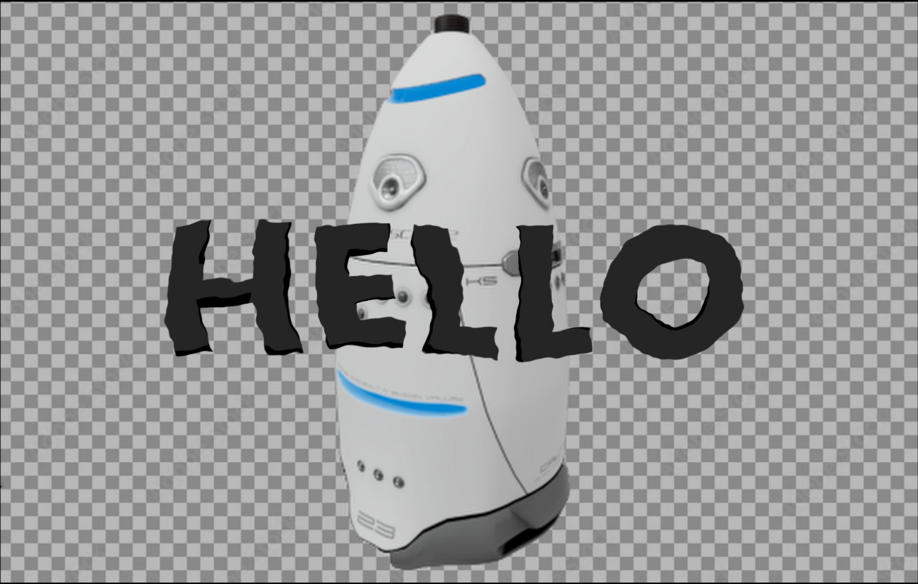 1. Une vidéo quasi silencieuse, dans laquelle le robot se présente à la première personne. Elle est montrée sur un écran au sol.