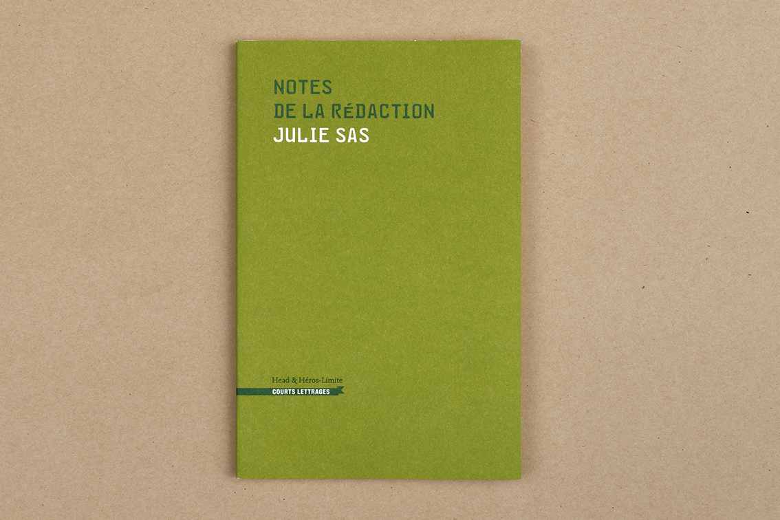 Avec Notes de la rédaction Julie Sas se saisit du livre comme d’un espace dans lequel elle organise, agence et adapte des textes dont certains ont eu une vie antérieure dans une performance ou une installation. Elle choisit le livre comme lieu où s’agrègent plusieurs façons d’interroger notre rapport essentiel au langage, au-delà des limites du sens. Ainsi ce livre se demande : Où commence et quand termine le sens? (Ça marche aussi à l’envers.) Quand commence et où termine le sens ? Comment dire quelque chose de vrai ? Quelque chose de définitif ? Quelque chose de durable ? Quelque chose de certain ? Pourquoi ne pas redire ce qu’on vient de dire si on peut le faire et si on risque de le faire mieux ? Pourquoi ne pas s’en tenir au silence ? Que se passe-t-il quand on prend la parole ? A qui la rendre ? Comment s’en débarrasser ? Quoi faire des jargons ? Comment on y échappe mais aussi comment on s’y cache ? Et surtout comment s’y prendre quand la langue avec laquelle on cherche à dire des choses, nous entraîne si souvent à dire « rien » ou si peu. Le livre se demande aussi ce qu’il advient du corps dans tout ça.