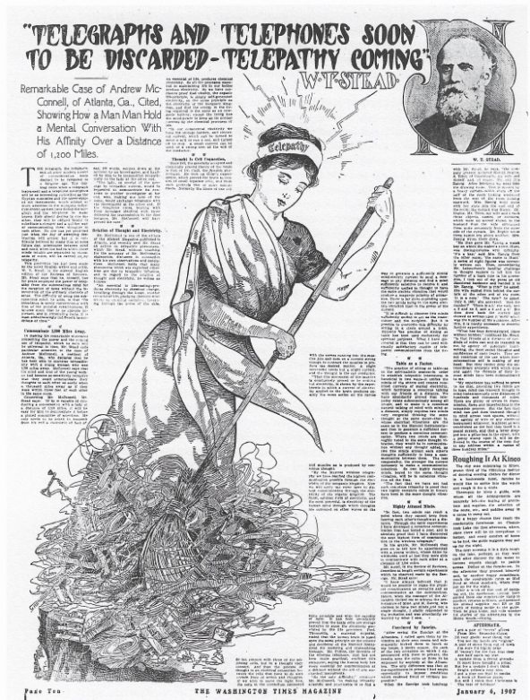 The mediums of the mid 19th century used their their “sensitive body's” to act as a sort of telegraph machine which largely improved the communication and delivered clearer messages from the spirit, to the living world. These mediums designed different re-transcription systems with automatic handwriting, coded alphabets systems creating interactive tactile interfaces. Entrepreneurs wanted to sell spirit communication devices to the general population by developing these devices. They took the form of planchettas or Ouija boards. The most sophisticated device was probably the celestial telegraph commercialized by Pease in 1854.