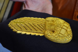 A visit at Uniformes d’Empire in Florennes Belgium. A workshop where hand crafted gold embroidery techniques are used to create historical army accessory’s such as gold braided cords, brocade, ribbons, epaulettes etc..Inspiring embroidery techniques for electronic textiles. The threads used are tinned copper, metal or silver based which can make interesting embroidery circuits since they are conductive.