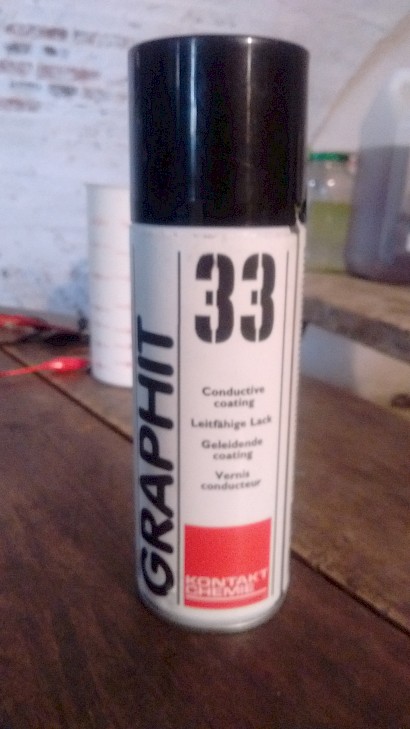 - I tested a graphite spray (quite resistive) but it fried and dissolved after some time so maybe need to apply a glue before and then spray graphite.