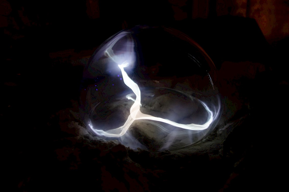 This project started by imaganing what type of matter exists in outer space. How could we create a sort of energie-matter observable on earth. Plasma is the 4th state of matter, it composes 99% of the visible matter of our universe. On earth we can observe plasma throughout metorological phenomenas such as lighting strikes and the aurora borealis. Indeed these phenomenas take place in our magnetosphère at certain atmospheric pressions, when gases are being ionised and made them visible through their greenish and purple shades. The sun is also a giant ball of gas in a plasma state sending all sorts of electromagnetic, uv, cosmic énergie to it's neraby plantes.