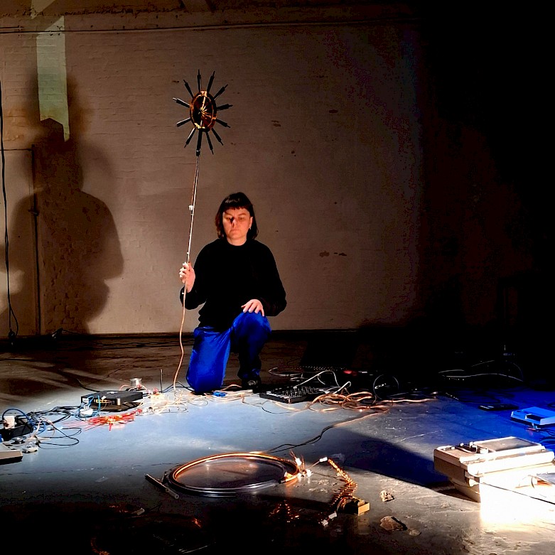 Her research borrows and reactivate domestic tactics of mediumistic séances of the mid-19th century and parapsychological, occult, and strange devices from lost archives, such as radionics, EVP’s, ghost detectors, celestial telegraphy, and body pendulums. This performance attempts to find ways to work with unpredictable or unstable energies and investigate auditory and sensory perceptions or hallucinations.