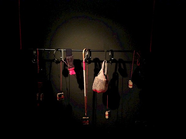 An Electromagnetic Walk is an installation comprising a series of everyday objects, each one connected to a headset and a electronic device manufactured using textile techniques, a fine copper mesh overlaps with the familiar objects creating antennas that can pick up electromagnetic waves present in our daily environment. Amplified and translated as such by the sound, these antennas give us access to a portion of the sound spectrum usually subtracted to the human ear.