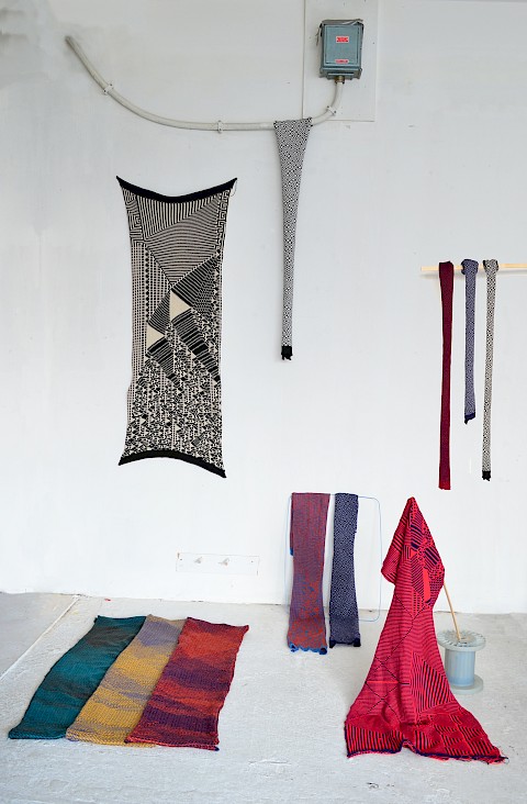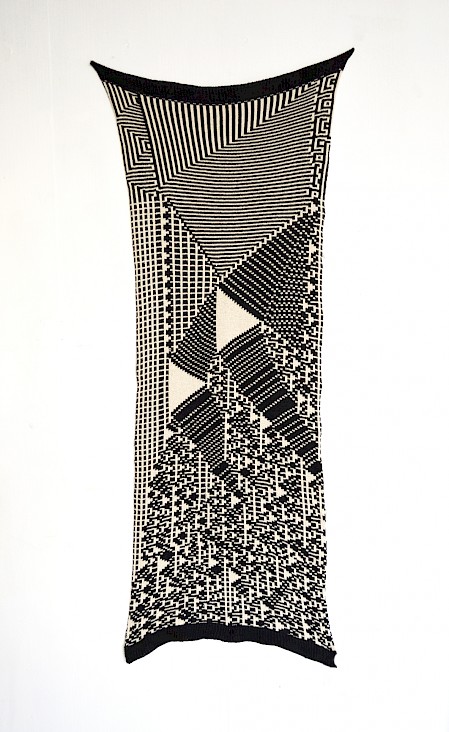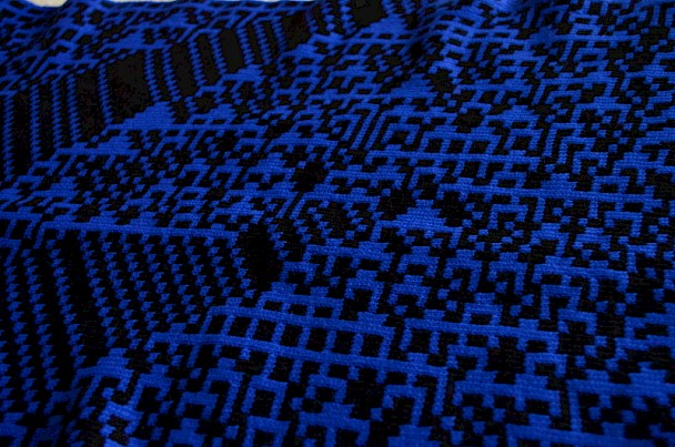Data Knits is a serie of continuous research experimenting on how a textile can become a place to store and memorize data. By finding a common ground that links computational practices and textiles, physical and digital data is translated and encoded into a tangible textile pattern. Programming tools are used to generate algorithms that create infinite combinations of simple forms and describe complex behaviours of nature and systems. Data Knits is also an echo to the reasearch i lead on ethnomathematics practices in tribal and traditional textiles.