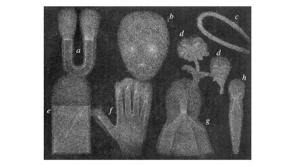 Entre autres techniques, Les Aethers se penchent sur : la chimie occulte expérimentée par deux Théosophes à la fin du 19e ; la photographie Kirlian imaginée par un couple d’inventeurs russe dans les années dans les années 1930 ; les miroirs de Kozyrev fabriqués par des médecins sibériens depuis les années 1990 ; le shifting mise au point par de jeunes adolescentes pendant le premier confinement et largement diffusé sur les réseaux sociaux. Ces techniques spécifiques raisonnent avec un ensemble plus vaste des pratiques de l’invisible documentées dans l’archive des Aethers : spiritisme, transcommunication instrumentale, photographie de la pensée, vision à distance, matérialisation d’ectoplasme, télépathie de masse à la radio, radionique…