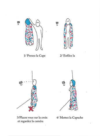 In the unfathomed deepness of the virtual world are born from digital hazards a unstable substance that created some sort of creatures. A scientific discovered that a breach exists between the virtual and real world where these creatures have decided to come and invade, in a anarchic way our reality. They have already managed to materialize themselves in the our world even though they cannot conserve their original powers. These powers have been classified by a scientific who has found some similarities between living creatures of our own world. For example they have camouflage and mechanic techniques to hide, defend or impress their enemies. This project has lead the scientific to find a way of how we could re-appropriate ourselves the virtual world by creating a cloth who could be apprehended by our environment and through our body. The cloak gives us the possibility to become invisible to a digital device such as surveillance cameras. The aim was to dig an invisible tunnel to the eyes of the virtual in order to control it’s deviations.