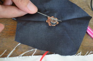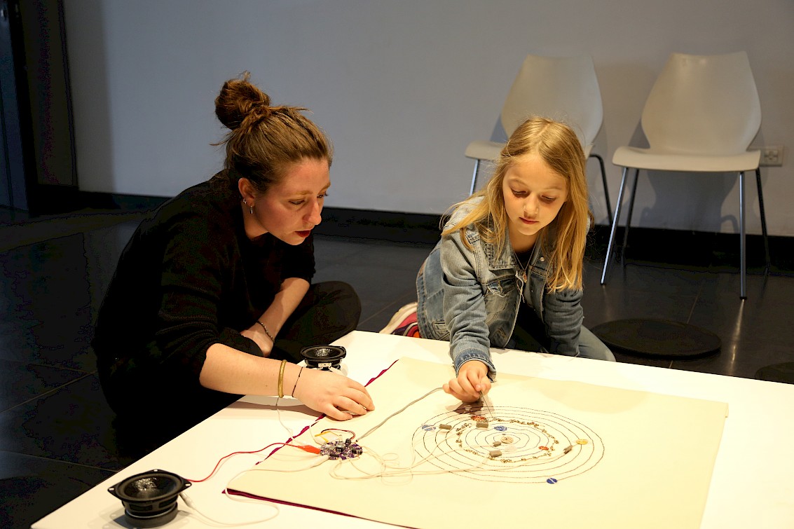 Using Lilypad to create an interactive textile interface that emits sonification of mouvements of planets when the needle touches each planets.