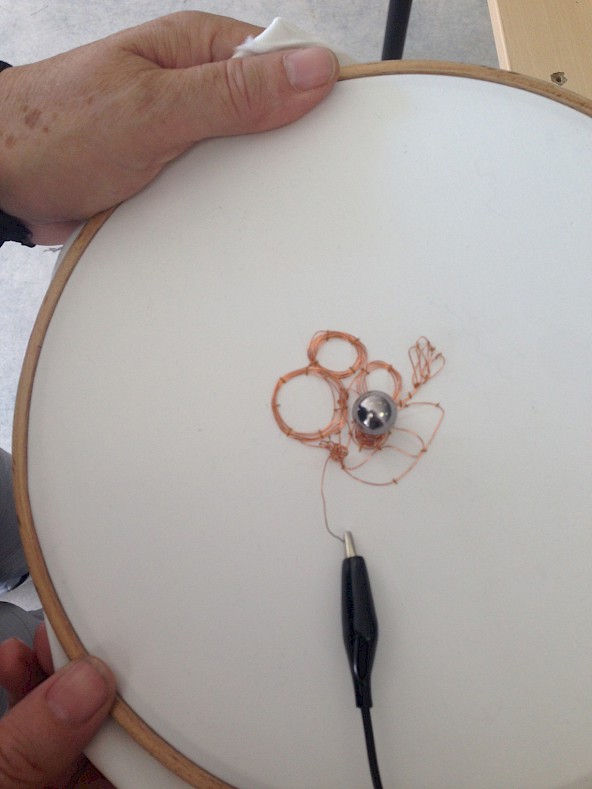 Textile Electro workshops are spaces where we deconstruct electronic principles and components to understand the technologies that surround us, and reappropriate electronic systems using textile and craft techniques. Embroidering speakers, sonifying embroidery, crocheting resistors or making noise with knitting are a few examples. We experiment with the limits and possibilities between art, craft and technology in an experimental approach. This project is part of a more global reflection on the question of reappropriating technologies, and brings together textile practices with the DIY movements of Free Culture and techno feminisme in order to re-dream and materialize our domestic technologies.