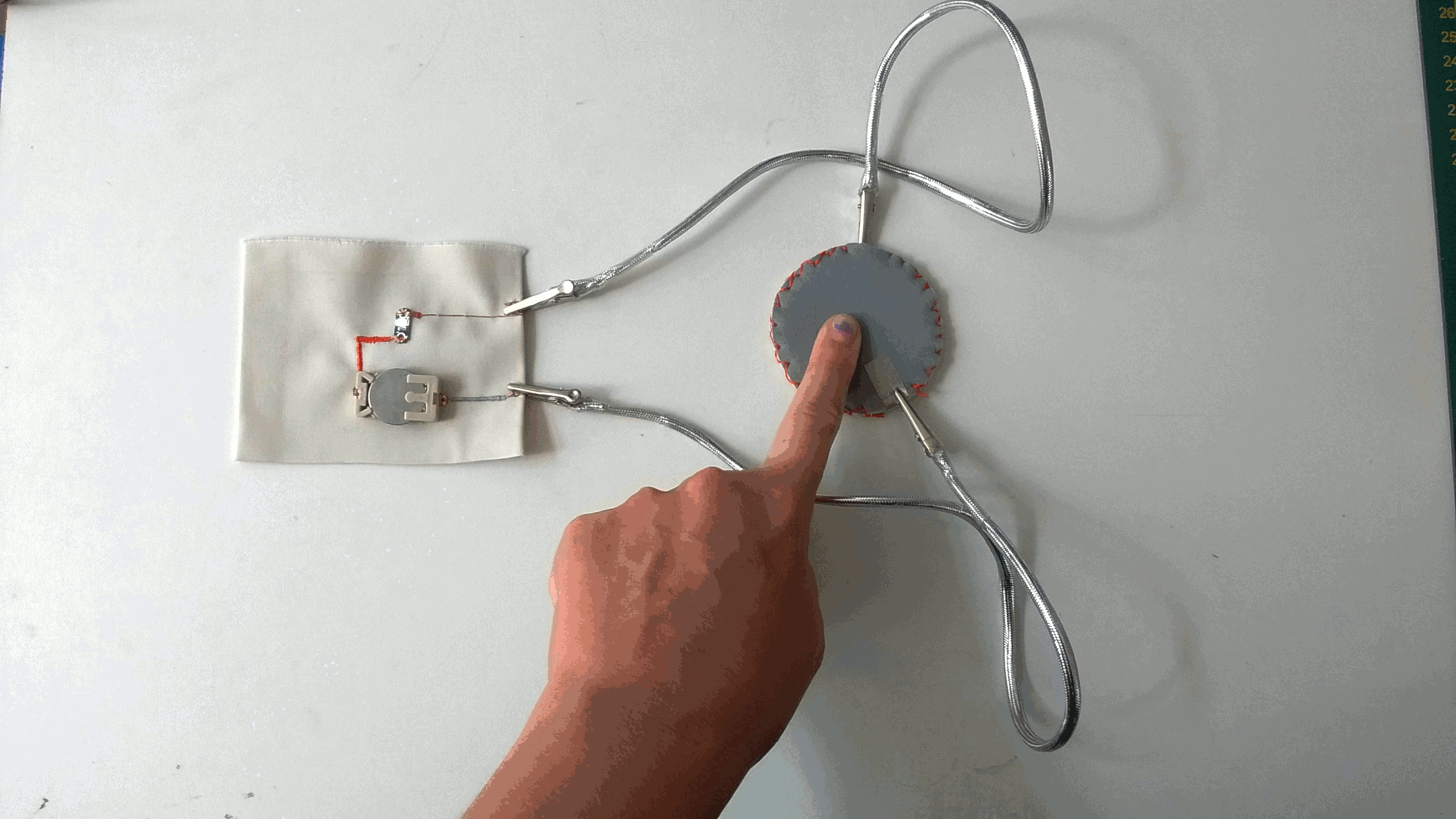 Création de composants électroniques en textile telle qu’une résistance qui modifie le pitch d’un oscillateur