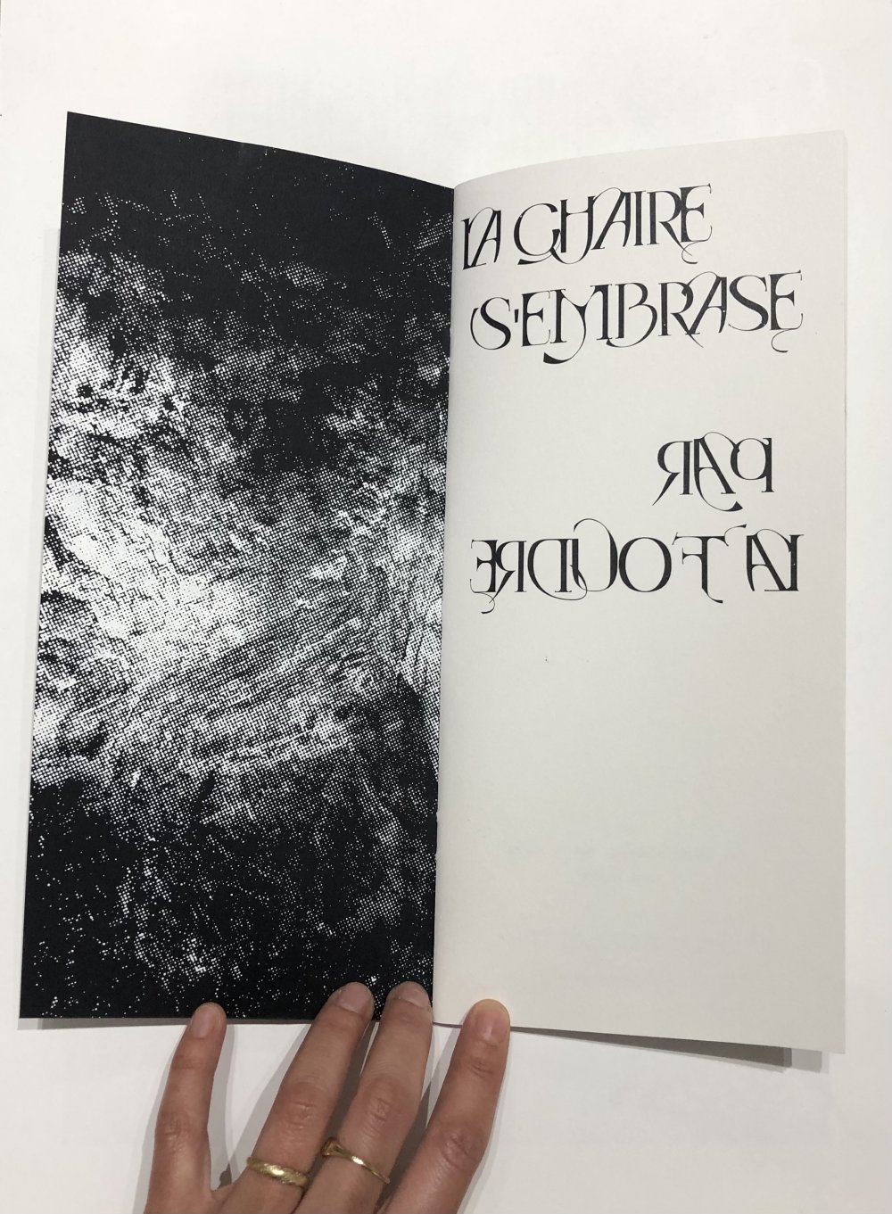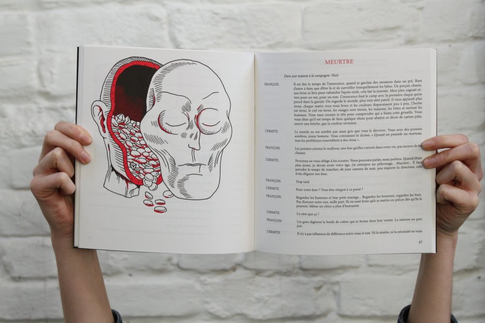 Imprimé dans le cadre d'une résidence Toner, Léviathan est un travail commun entre pièce de théâtre et recherche graphique. Un texte autour de nos peurs et angoisses, une Boule comme un vortex de nos émotions fortes. www.ciefact.com
