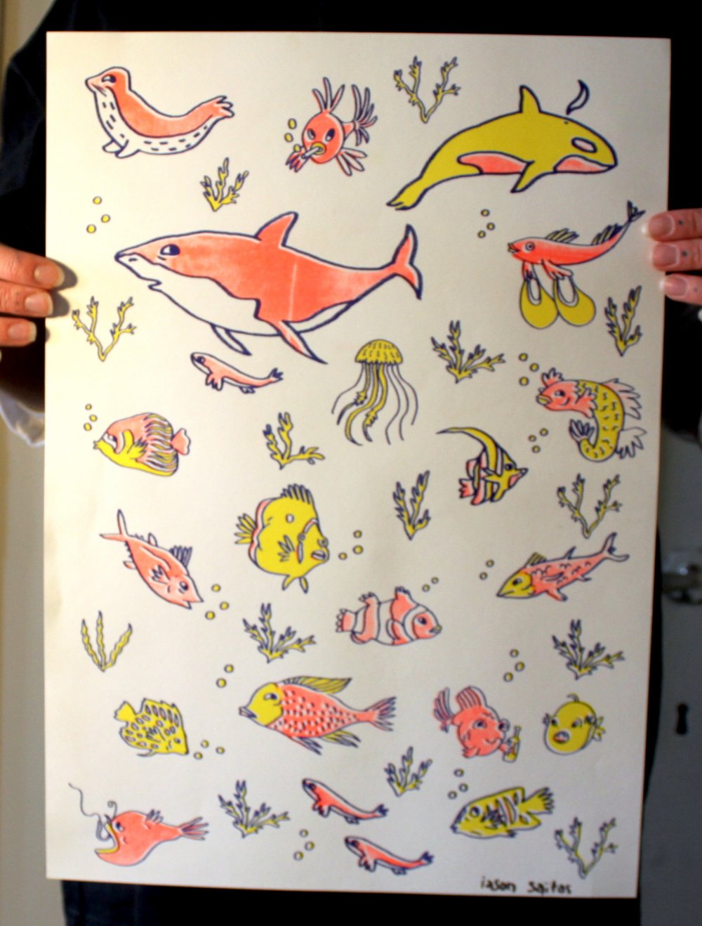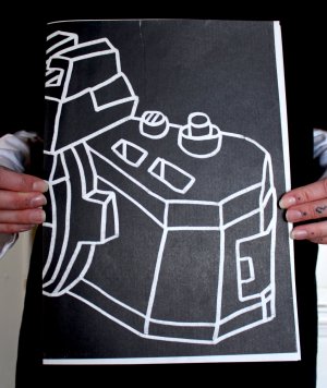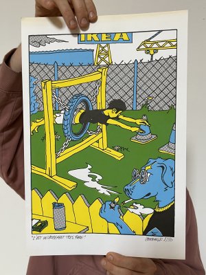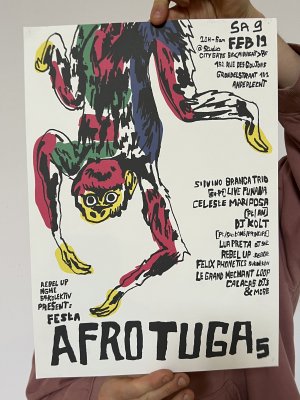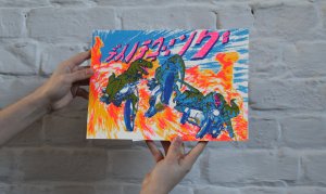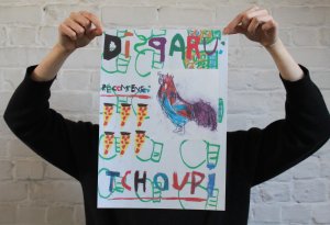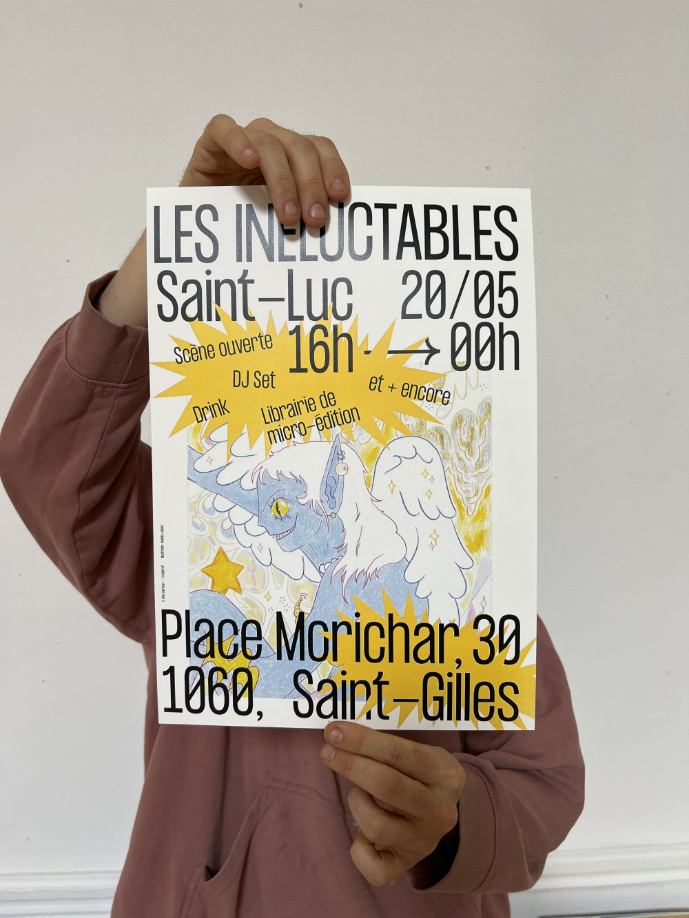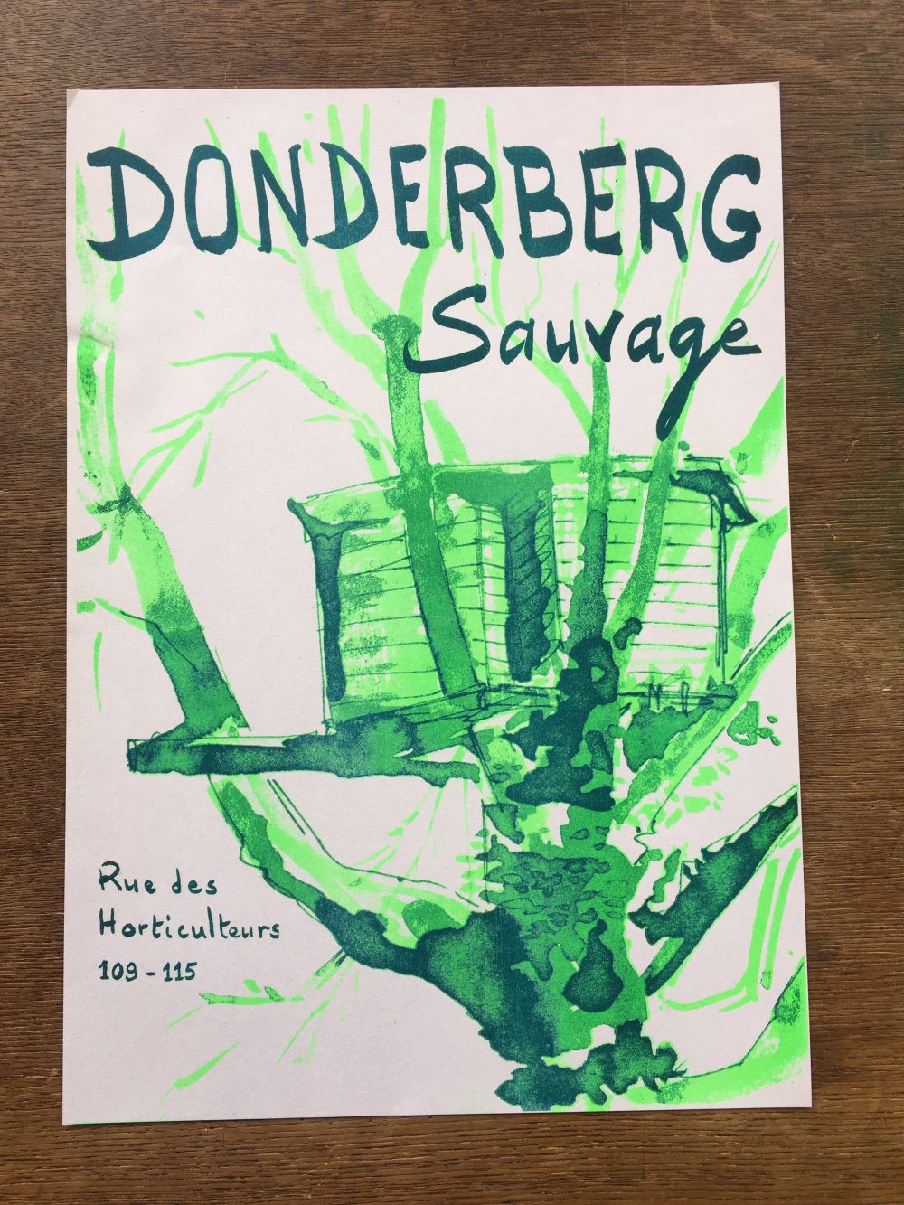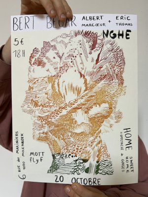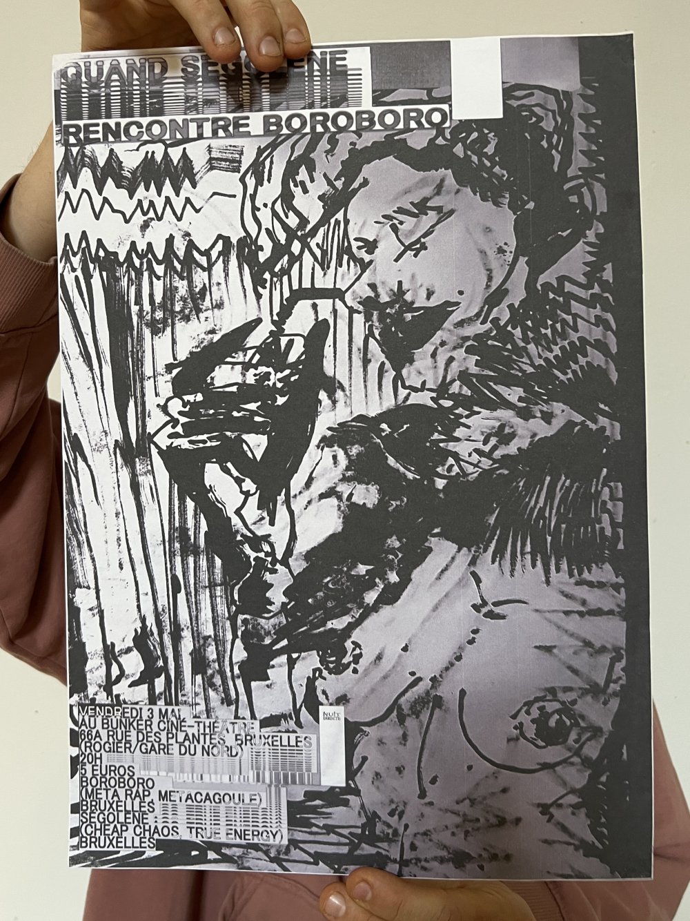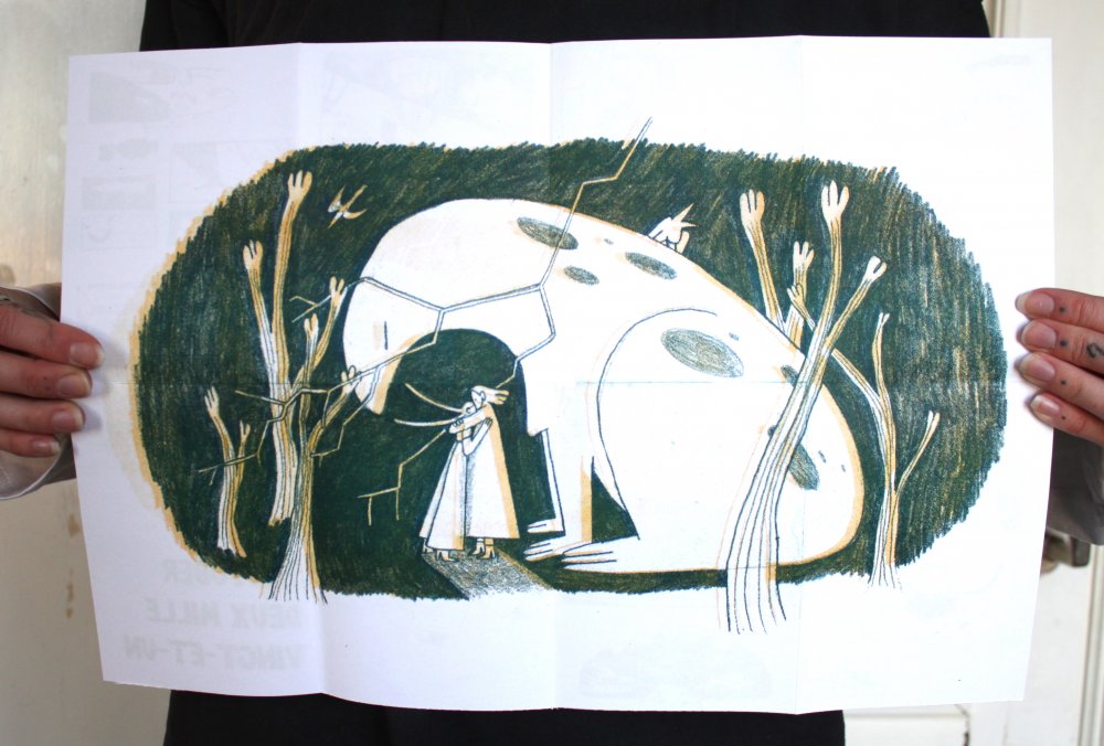 Affiche dessinée par Eléasr (12 ans) imprimée aux Atelier du toner par Antoine Erre en compagnie de son cousin, à l'occasion de sa visite à Bruxelles.