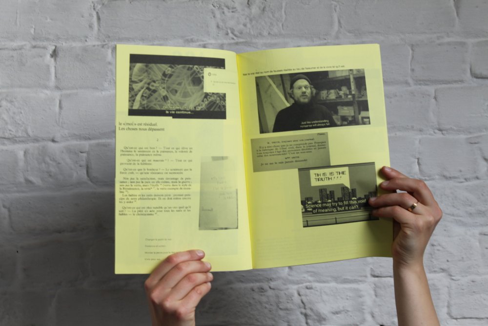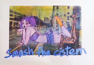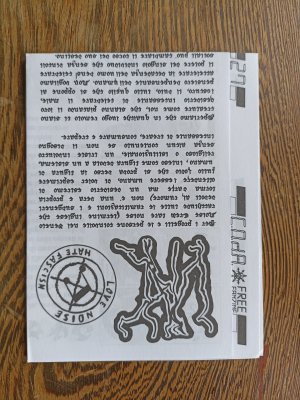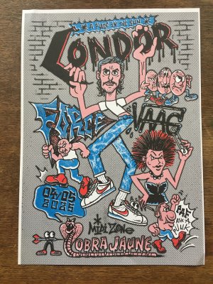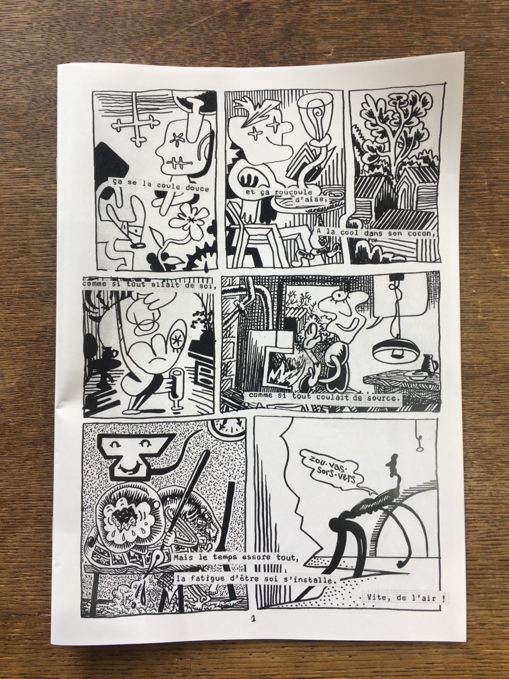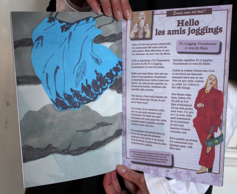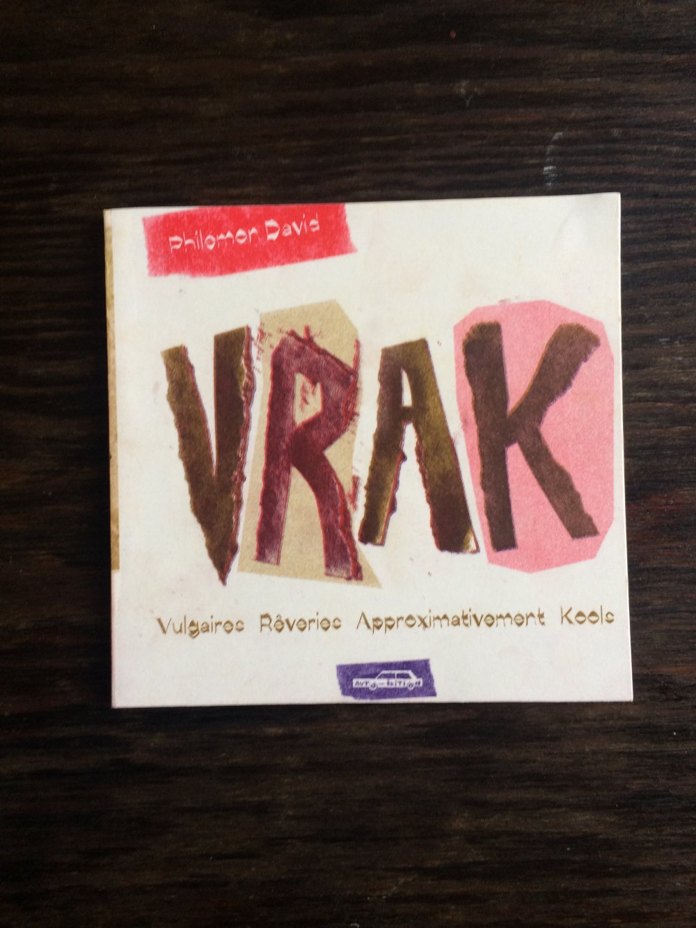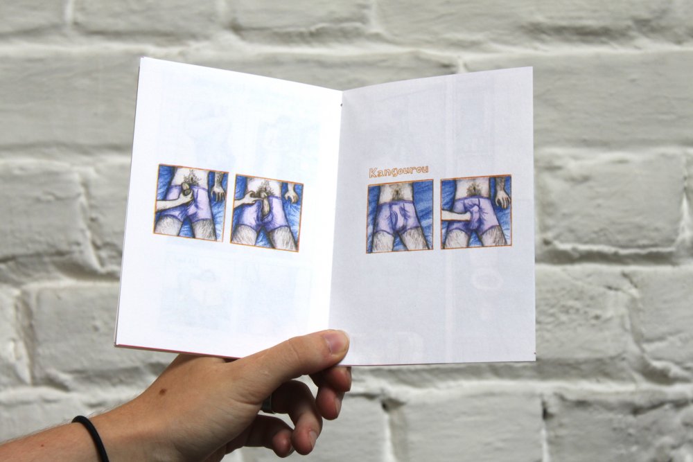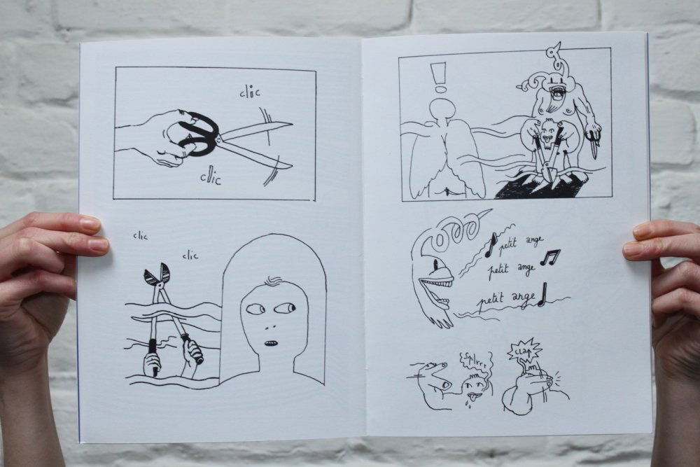Réédition augmentée (lire modifiée) de l'édition originale de 2001, qui elle était imprimée en sérigraphie. Fanzine de 16 pages format A5 en (riso) 2 couleurs. Dessins accompagnés de textes composés avec des mots découpés dans des magazines.
