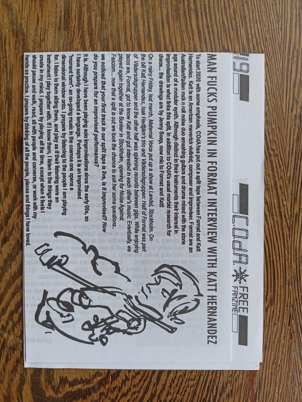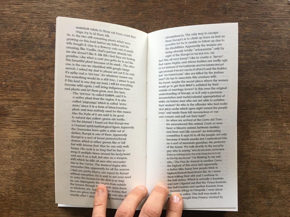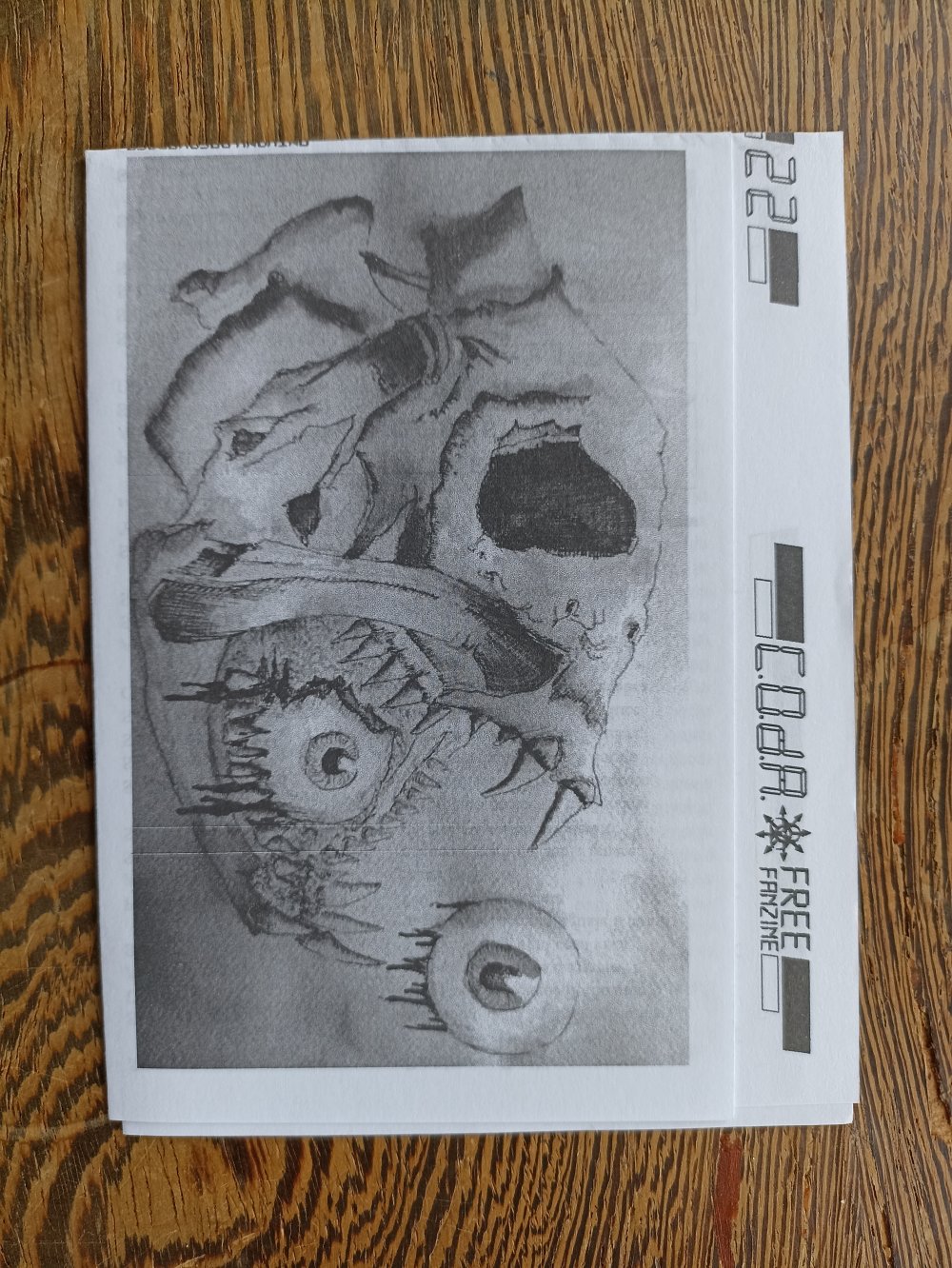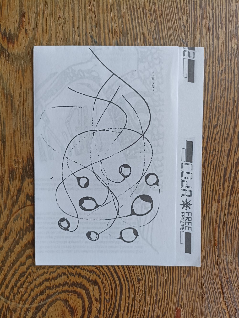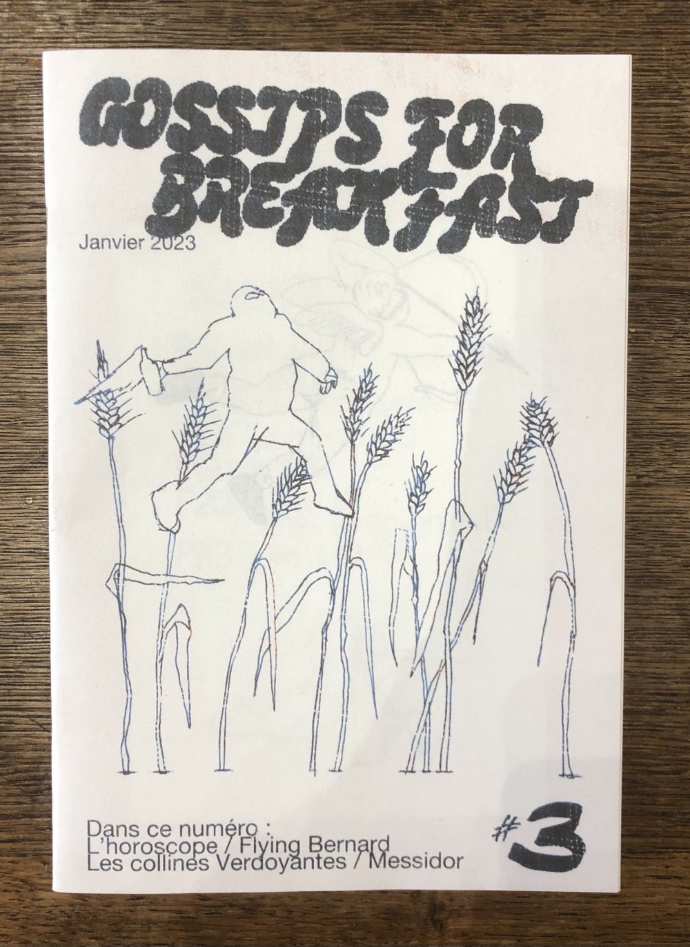 Réédition augmentée (lire modifiée) de l'édition originale de 2001, qui elle était imprimée en sérigraphie. Fanzine de 16 pages format A5 en (riso) 2 couleurs. Dessins accompagnés de textes composés avec des mots découpés dans des magazines.