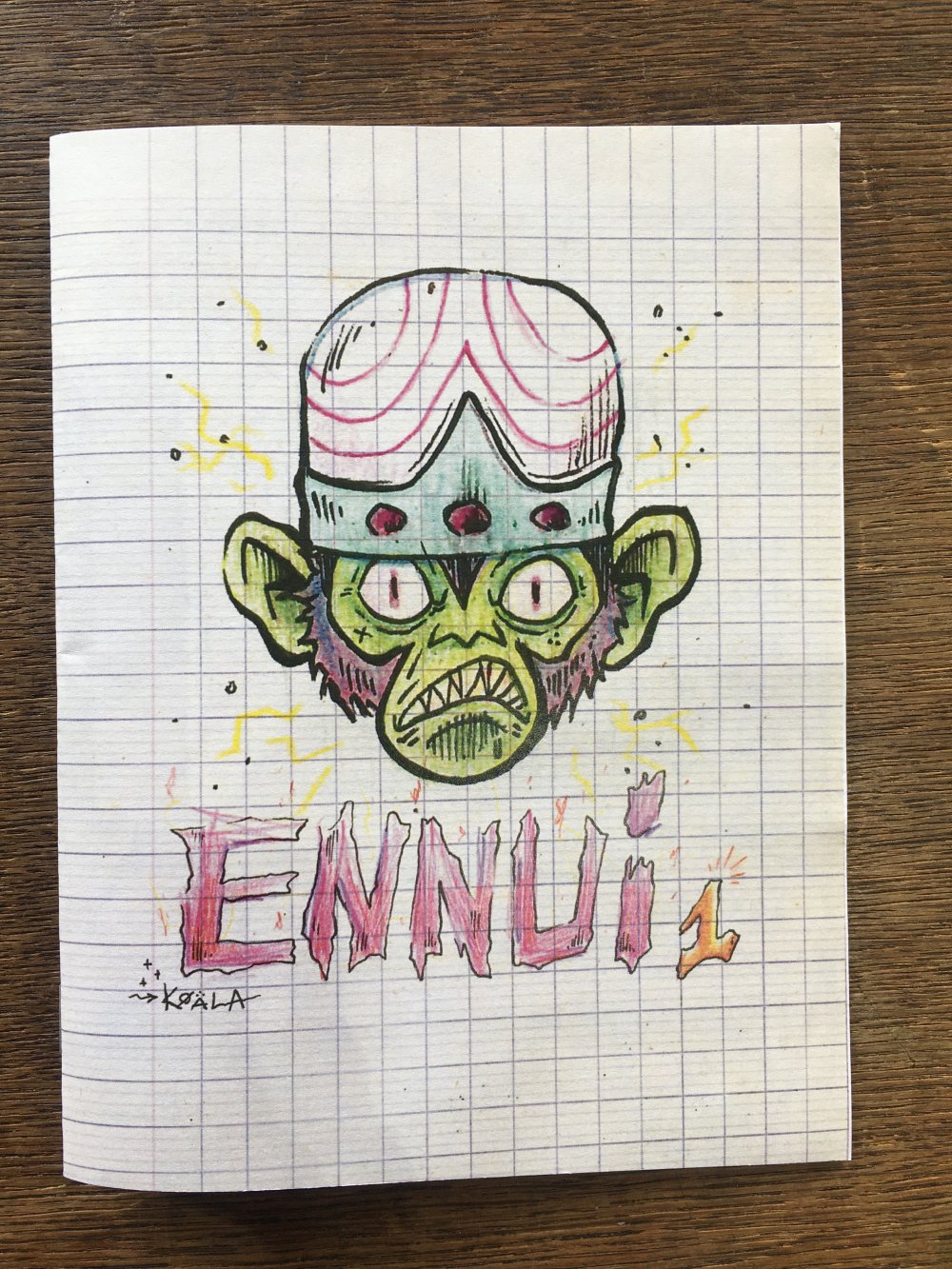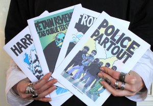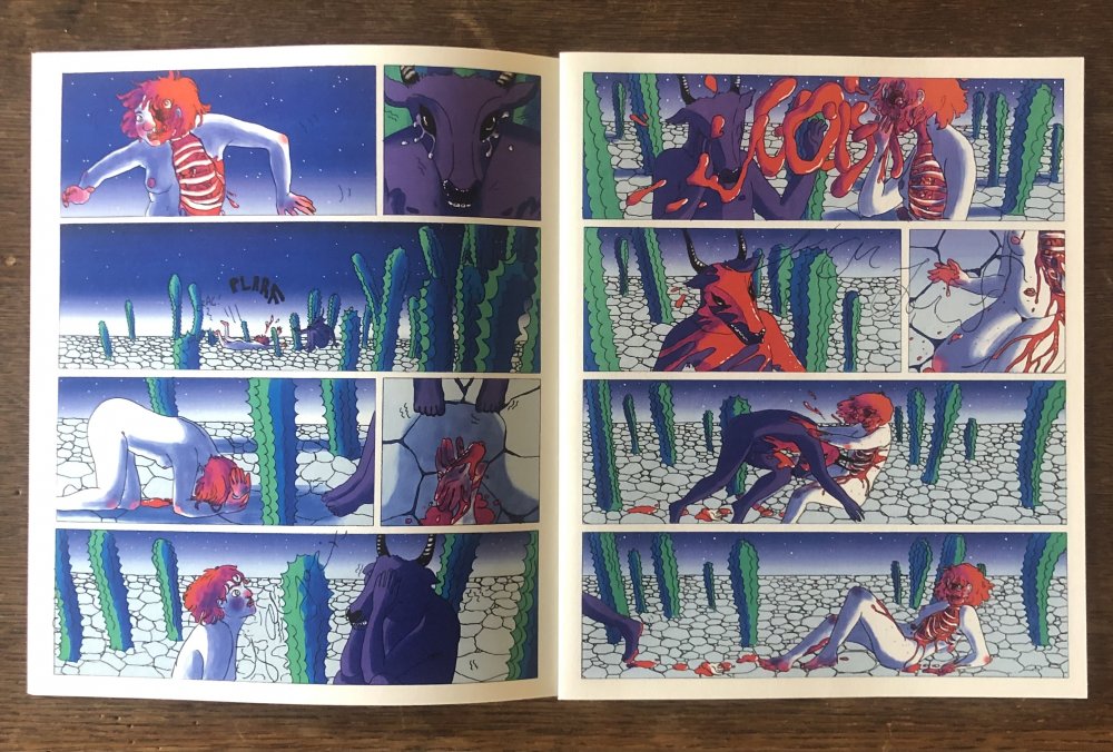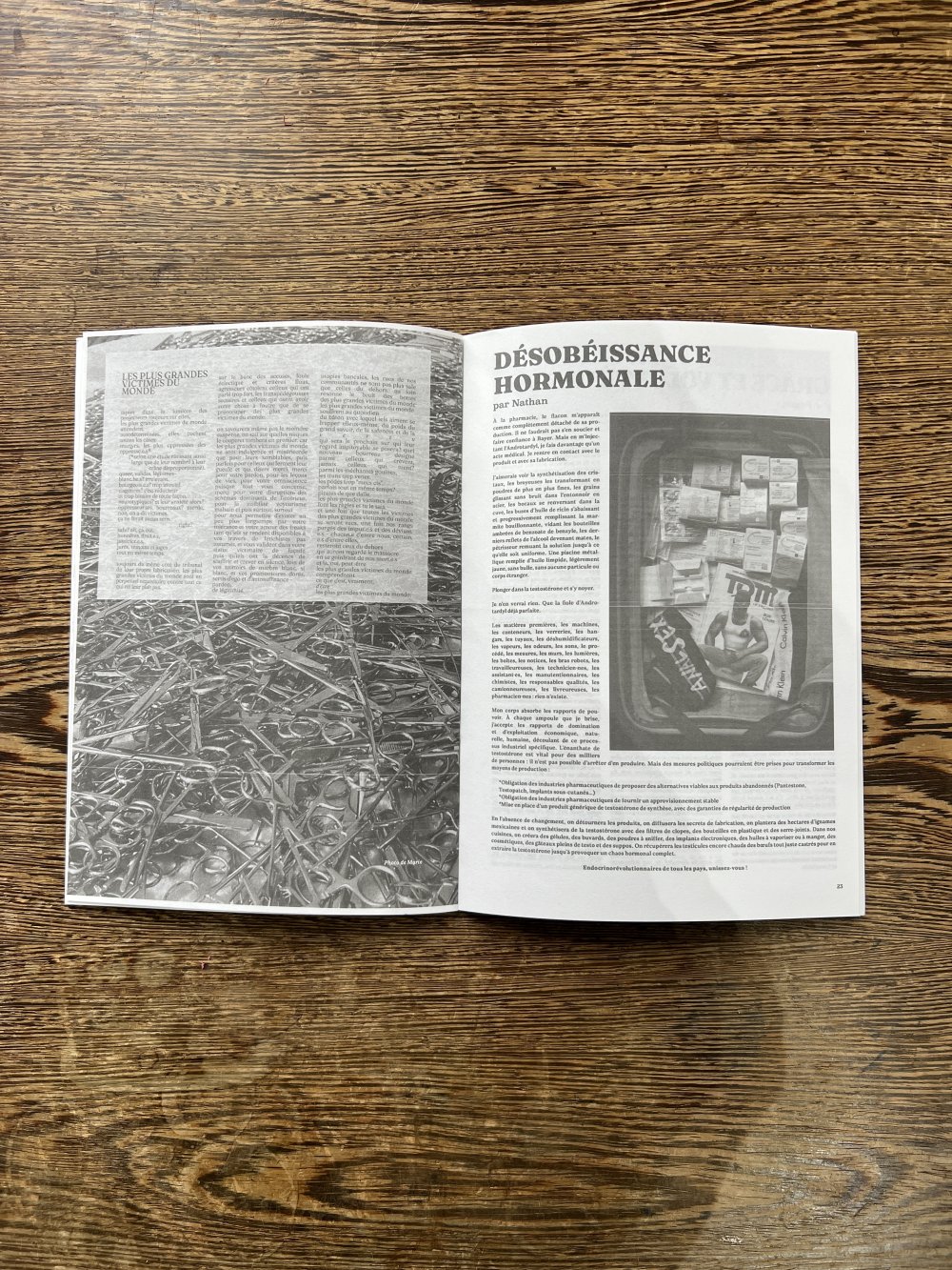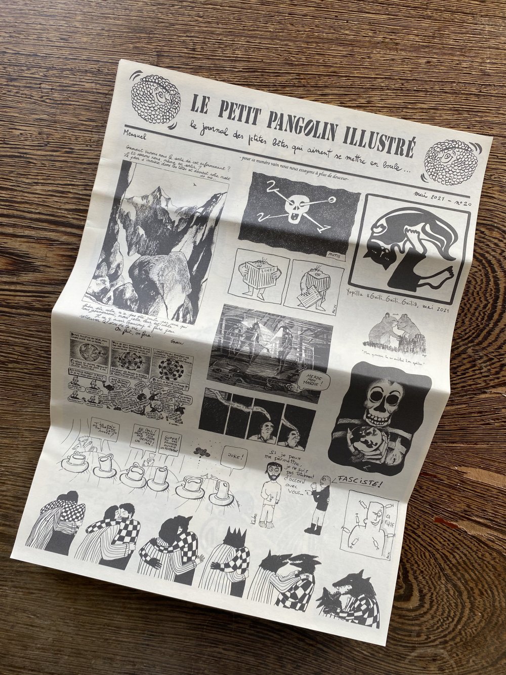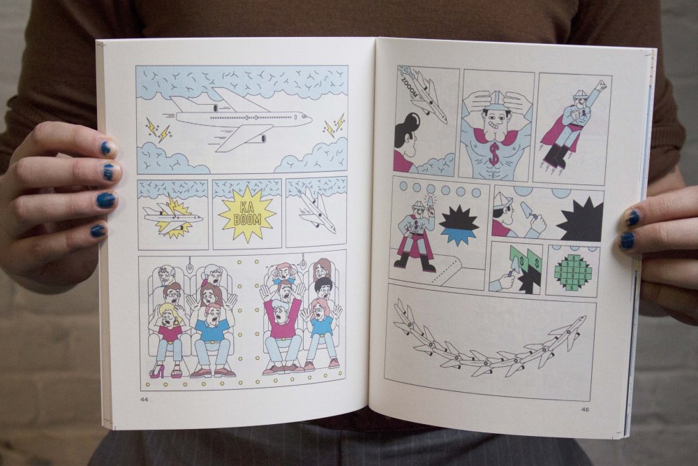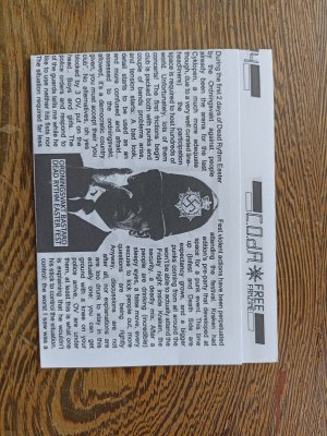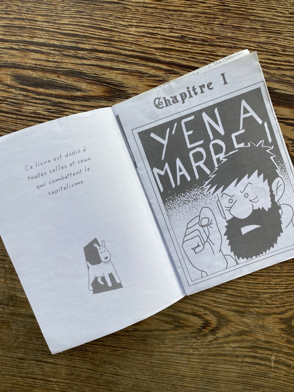 Réédition augmentée (lire modifiée) de l'édition originale de 2001, qui elle était imprimée en sérigraphie. Fanzine de 16 pages format A5 en (riso) 2 couleurs. Dessins accompagnés de textes composés avec des mots découpés dans des magazines.