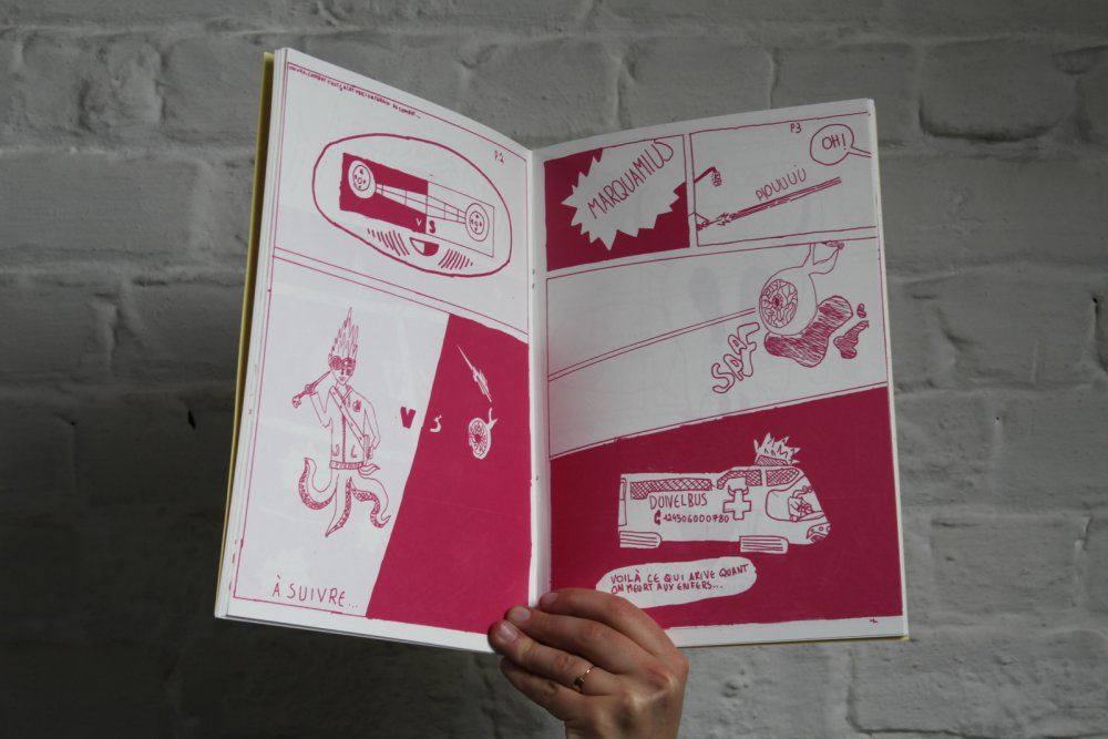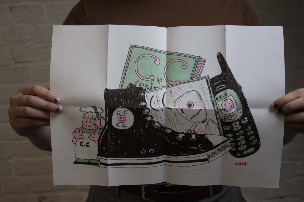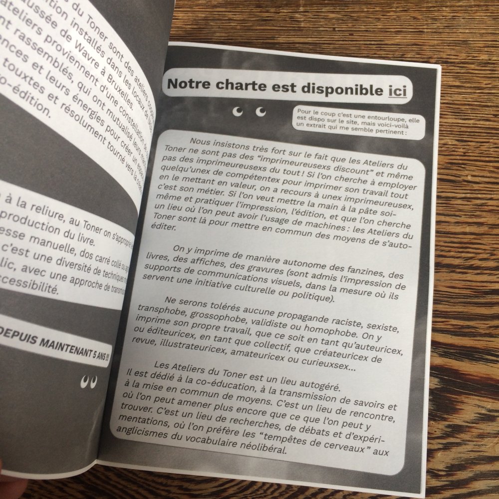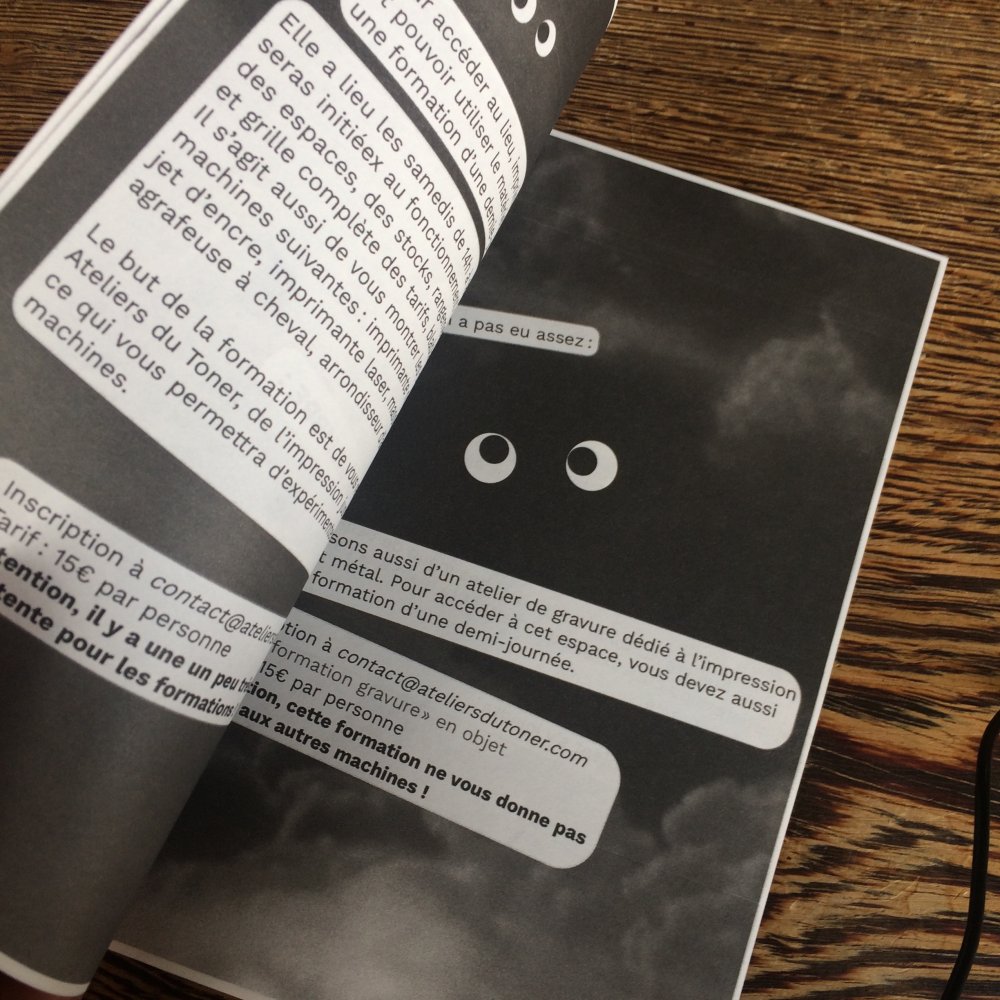Pour inaugurer l'ouverture officielle du TONER, nous avons invité nos premiers résidents - les auteurs Valério Bindi et Bambi Kramer - à utiliser nos machines pour la première fois afin de confectionner un livre collectif sur base d’un appel à contributions et de moments de dessin sur place.