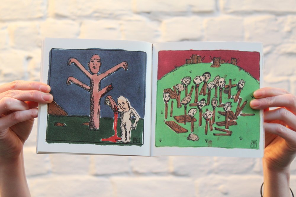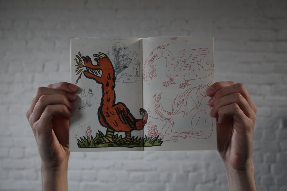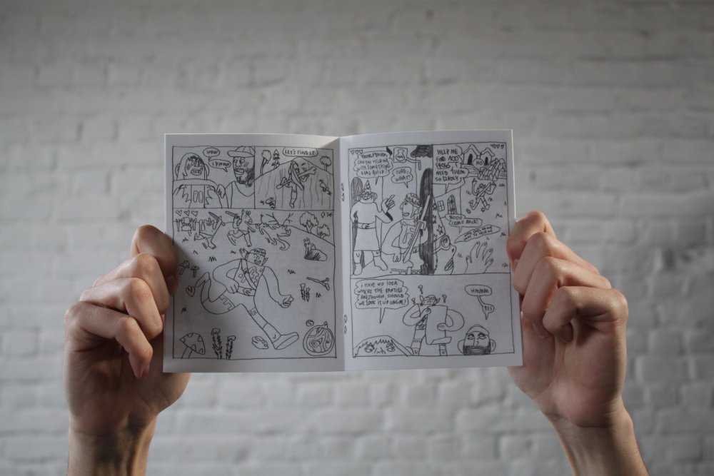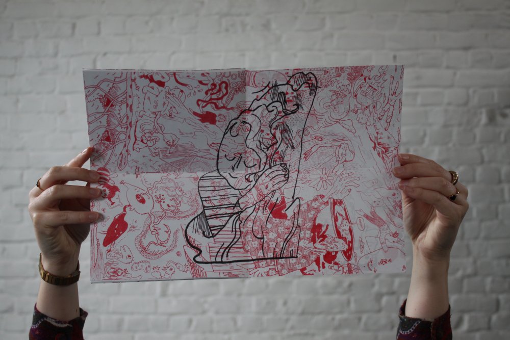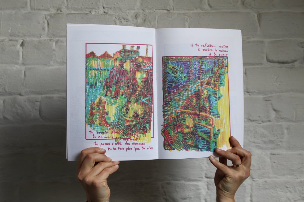 Pour inaugurer l'ouverture officielle du TONER, nous avons invité nos premiers résidents - les auteurs Valério Bindi et Bambi Kramer - à utiliser nos machines pour la première fois afin de confectionner un livre collectif sur base d’un appel à contributions et de moments de dessin sur place.