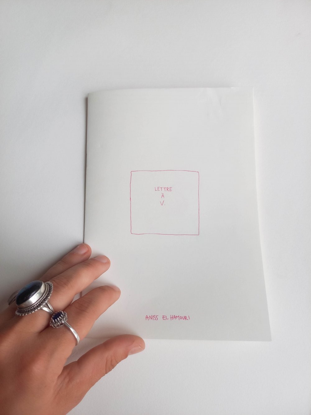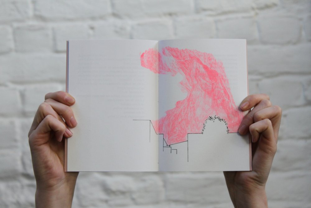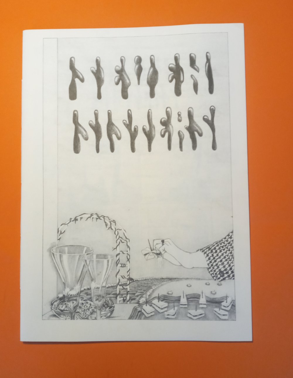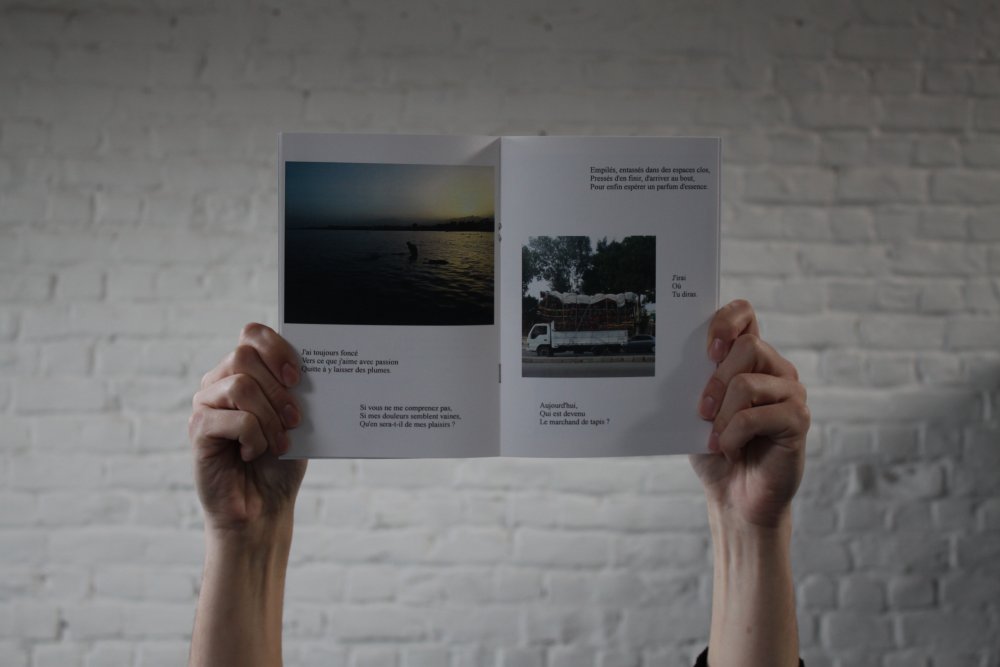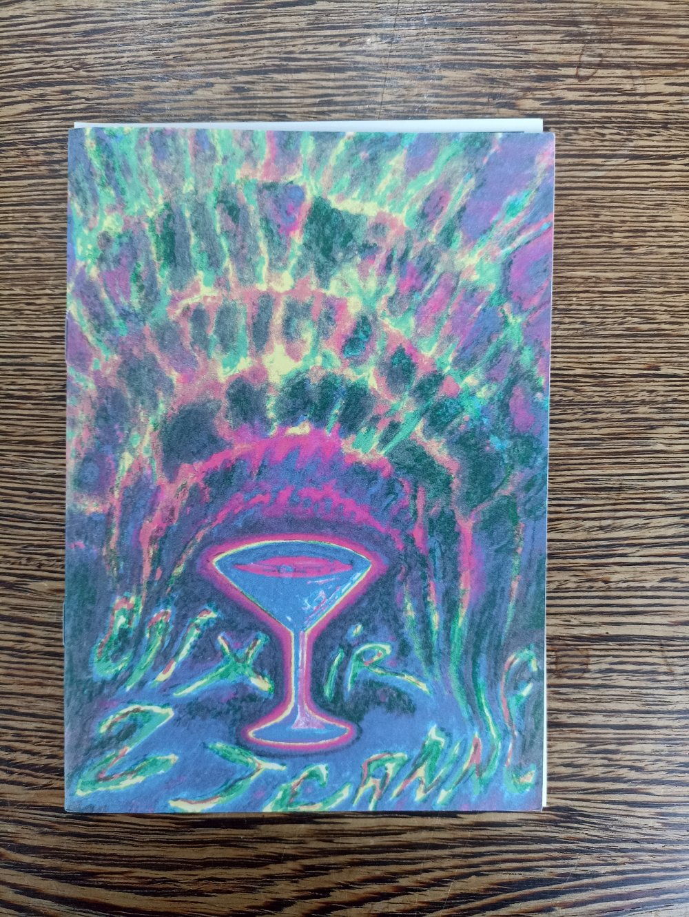 Fanzine de poésie et d'illustrations, format A5, riso 3 couleurs noir, rose, violet.