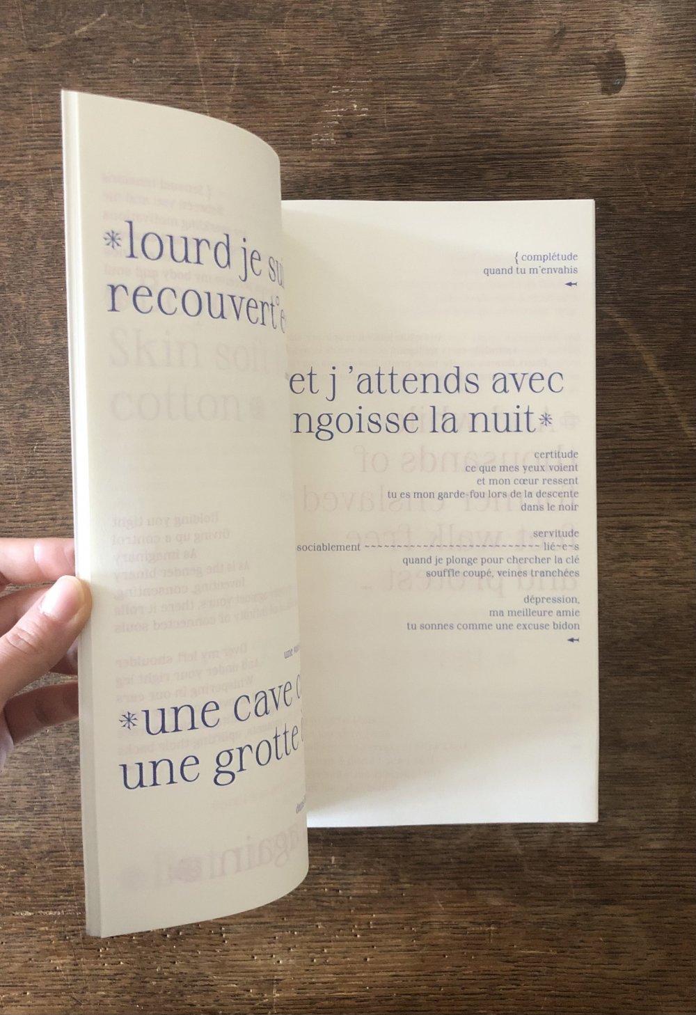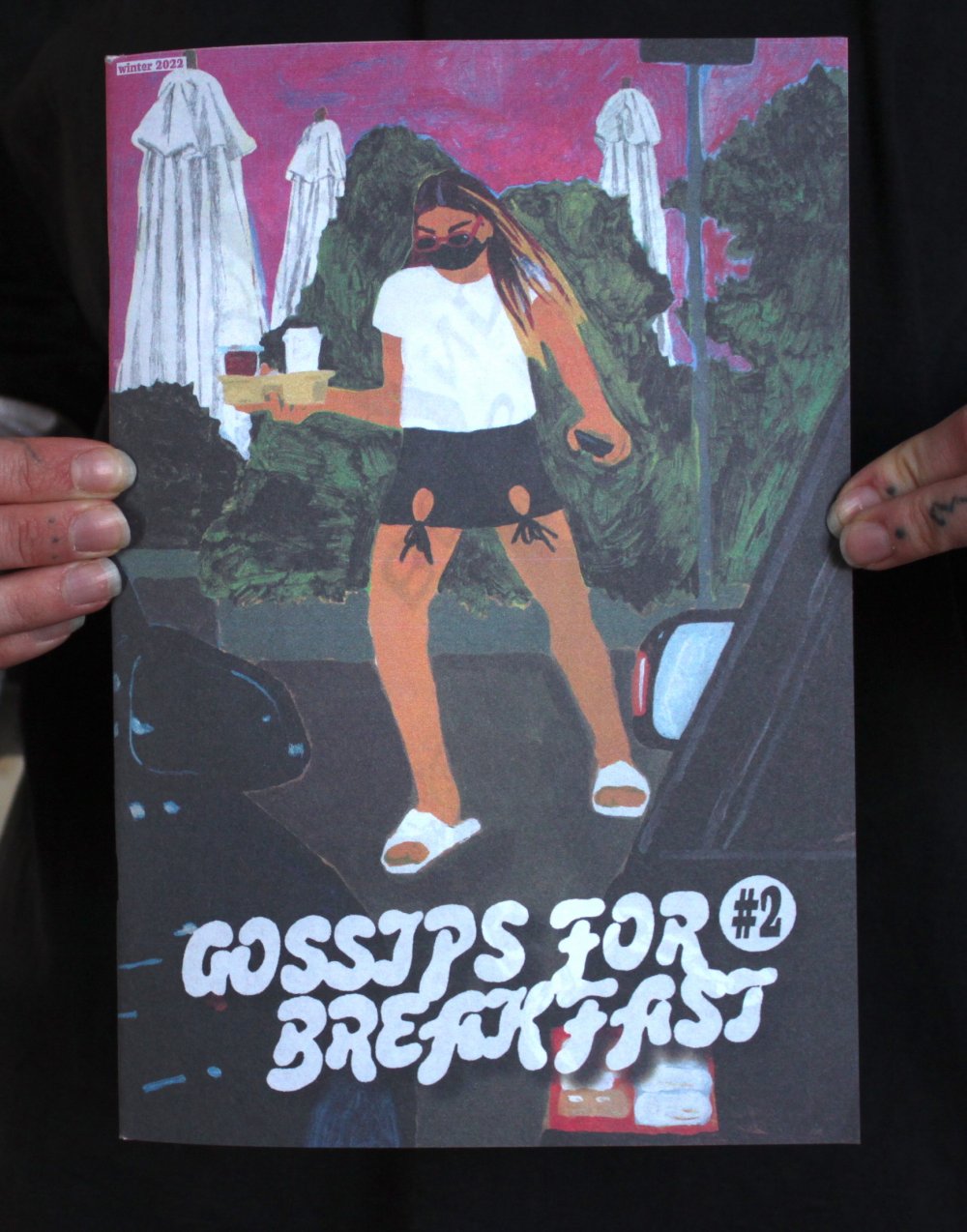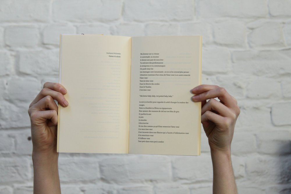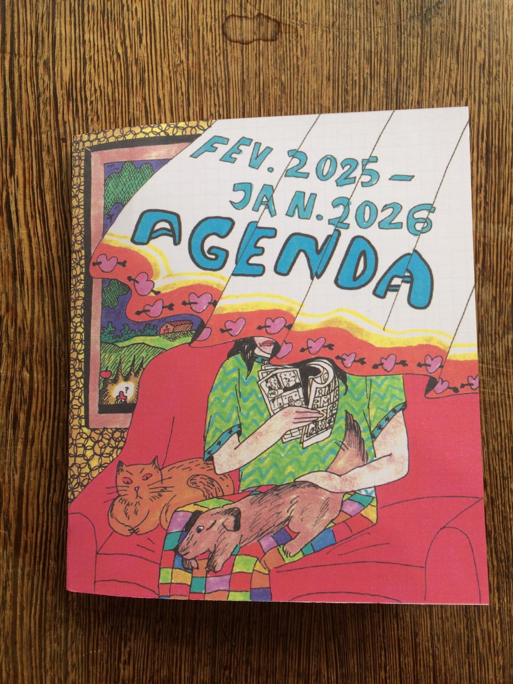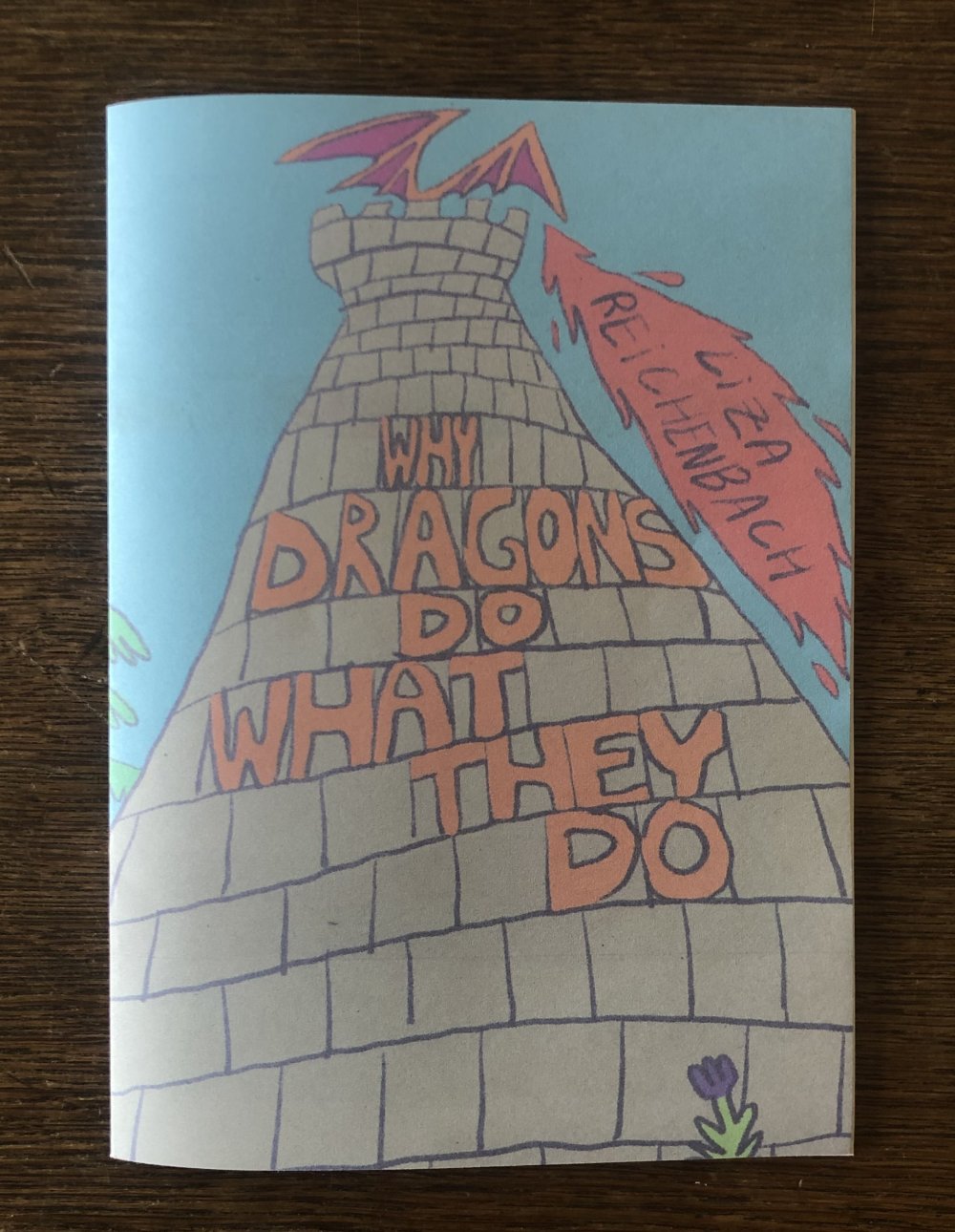 Fanzine de poésie et d'illustrations, format A5, riso 3 couleurs noir, rose, violet.