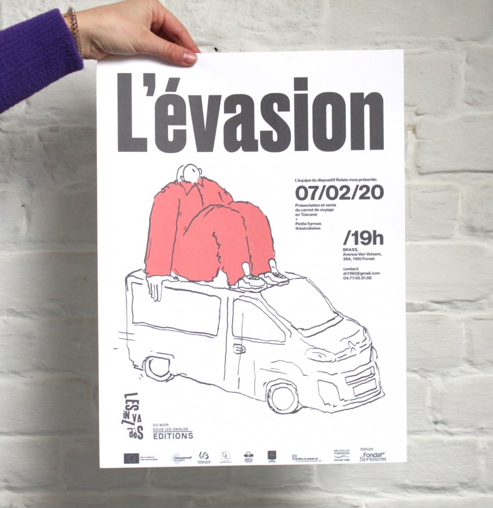 Impression de poster qui seront en vente à prix libres le 27 septembre dans le cadre de notre premier évènement à la fonderie à Molenbeek.
