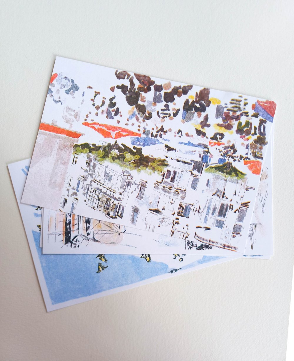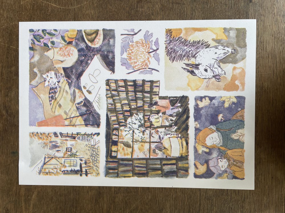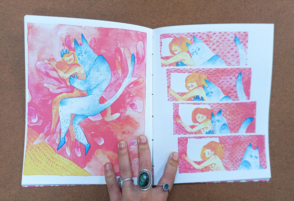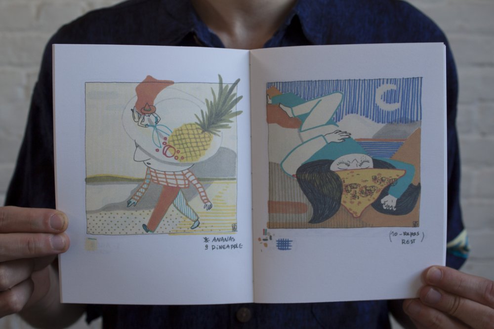 Dessins originaux à l'aquarelle et couverture sérigraphiée.