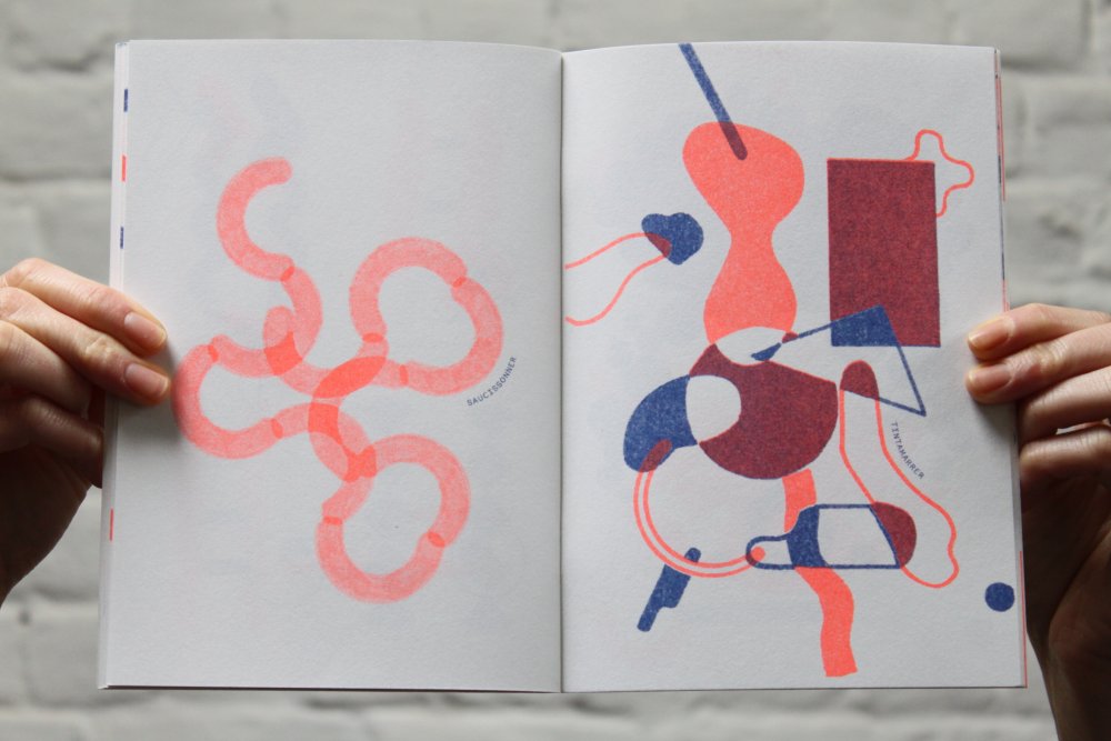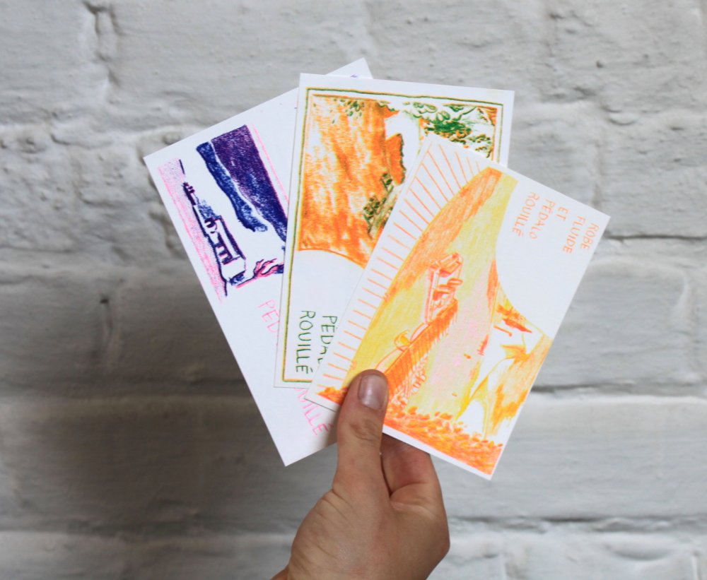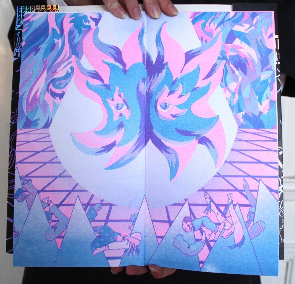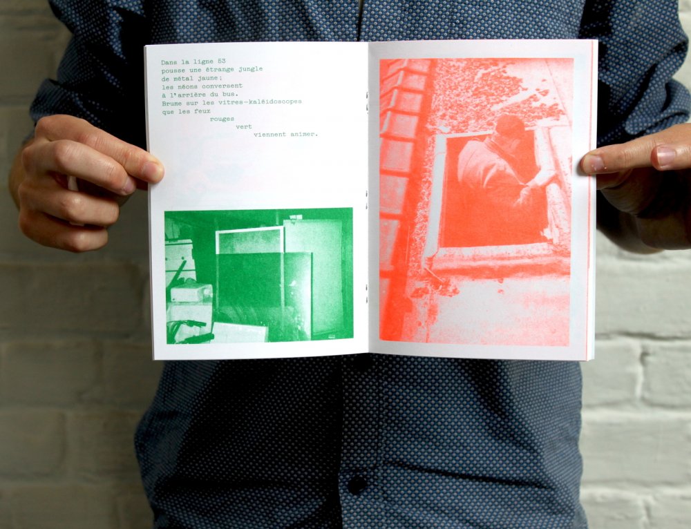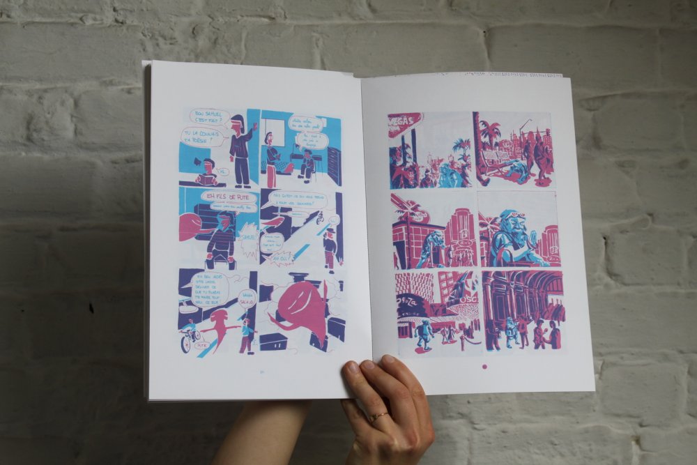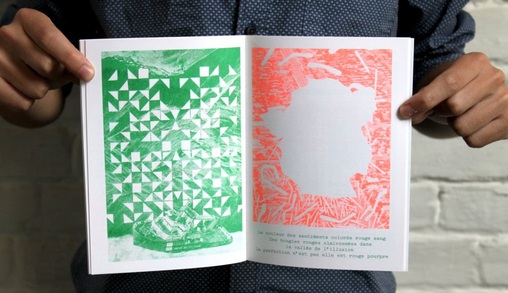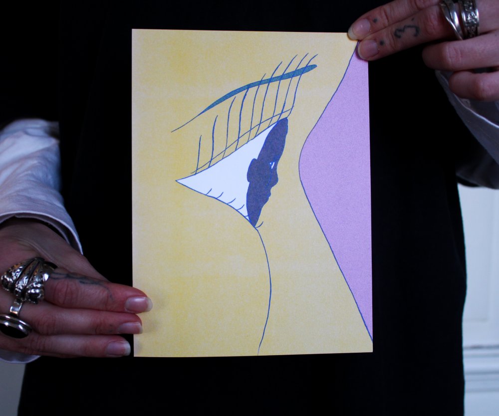 fusin sur papier, imprimé en risographie par Cyrille Aron et les éditions Bleu Velours.