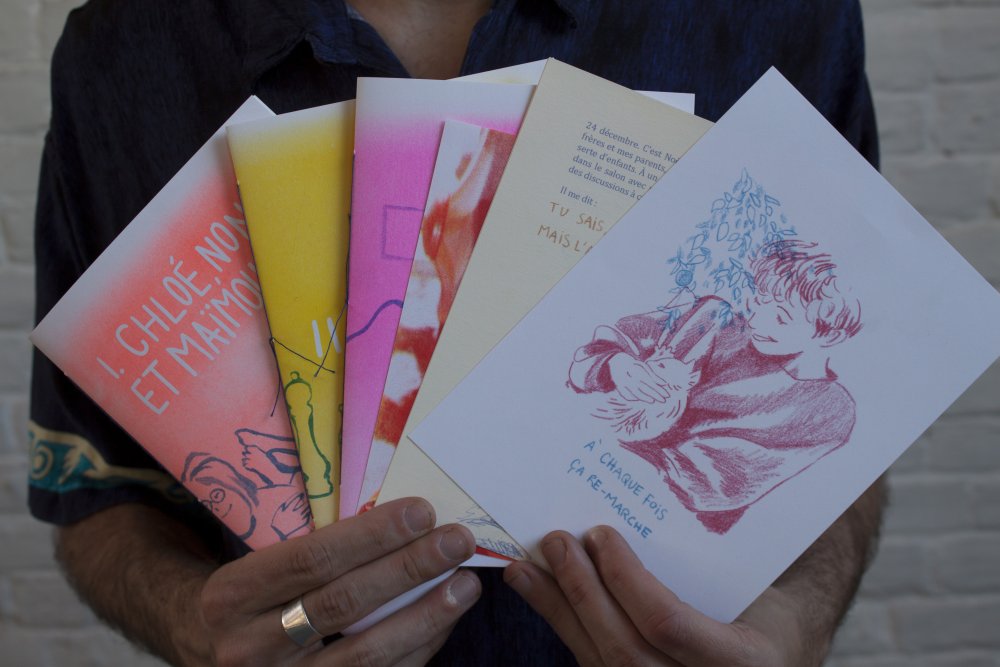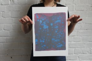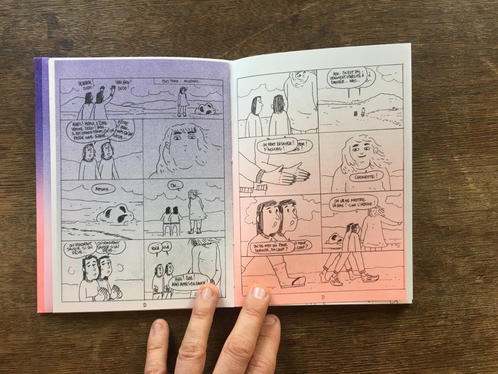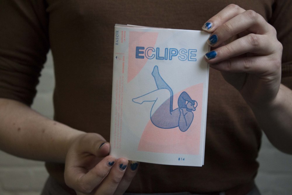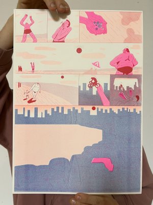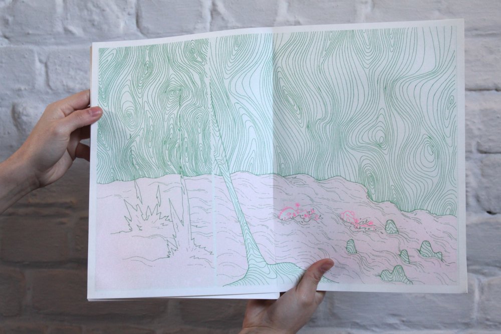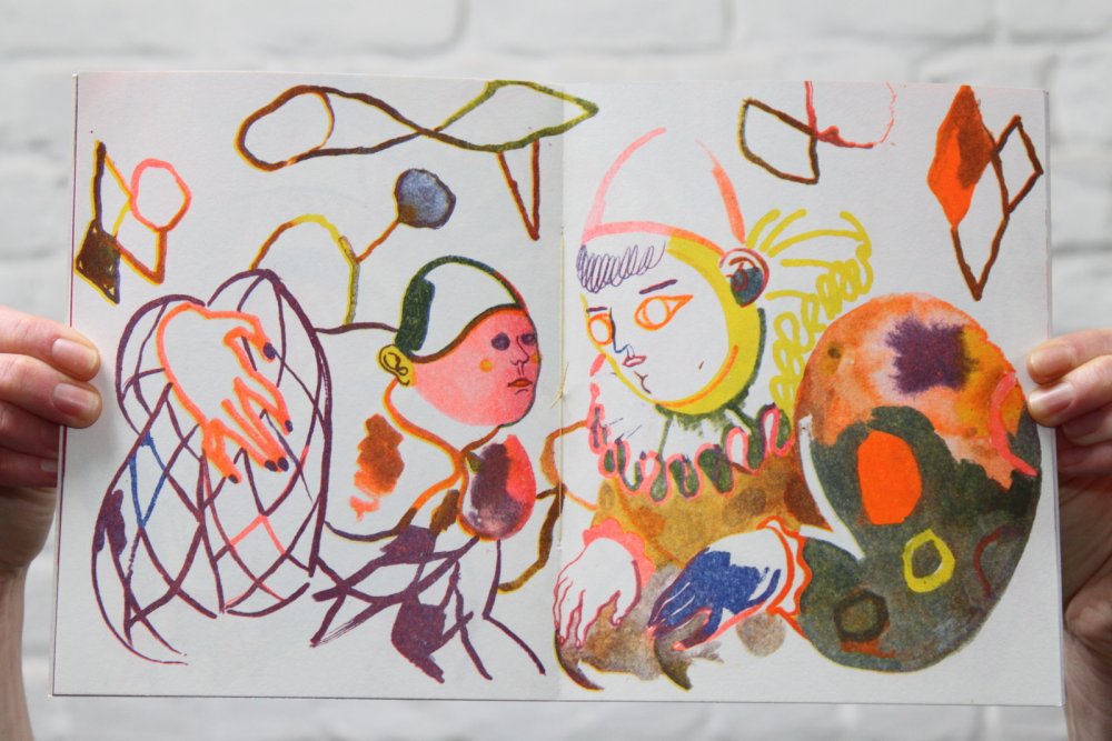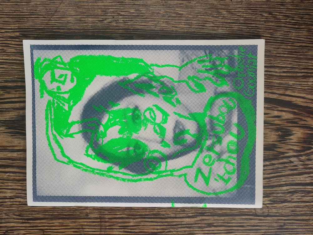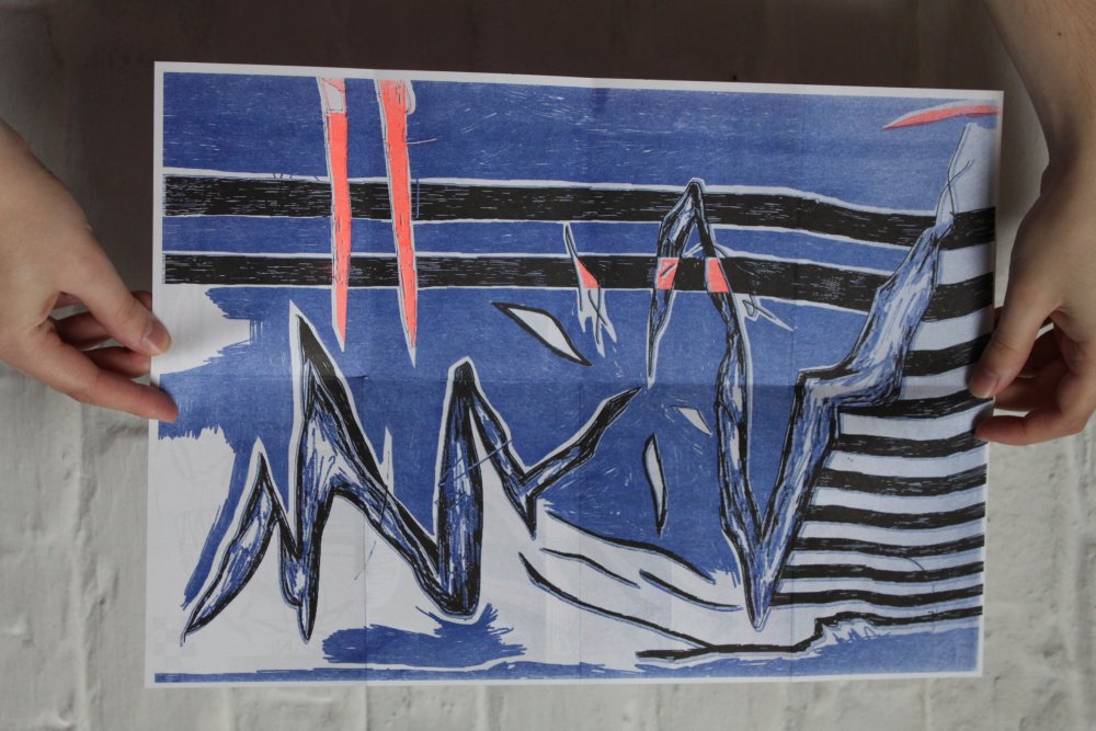 fusin sur papier, imprimé en risographie par Cyrille Aron et les éditions Bleu Velours.