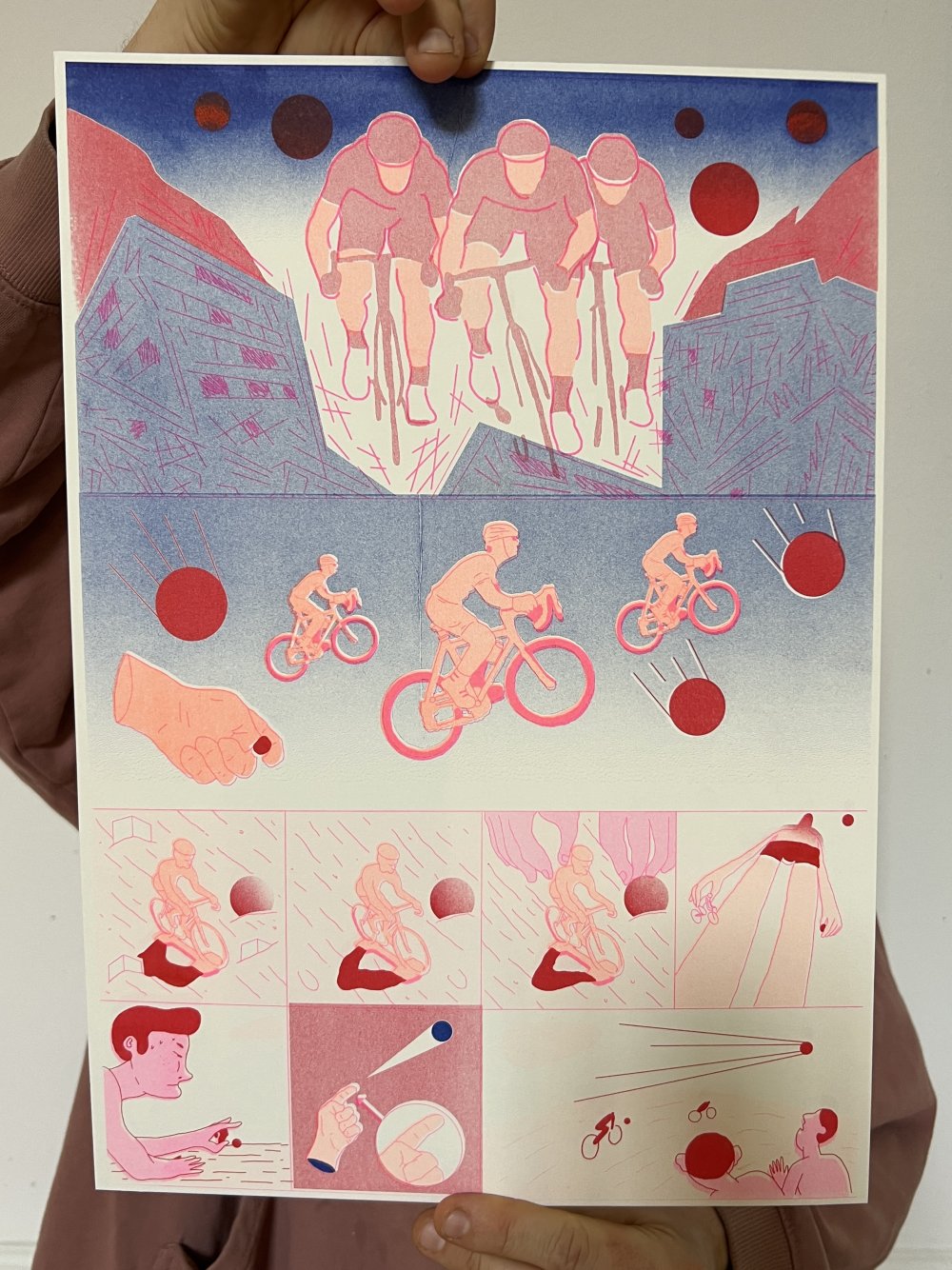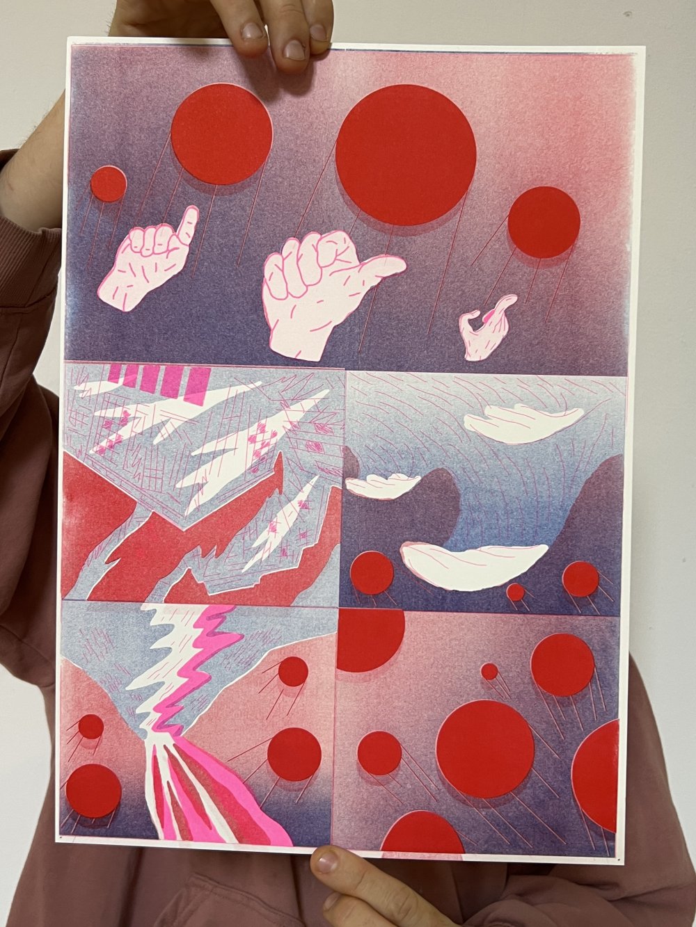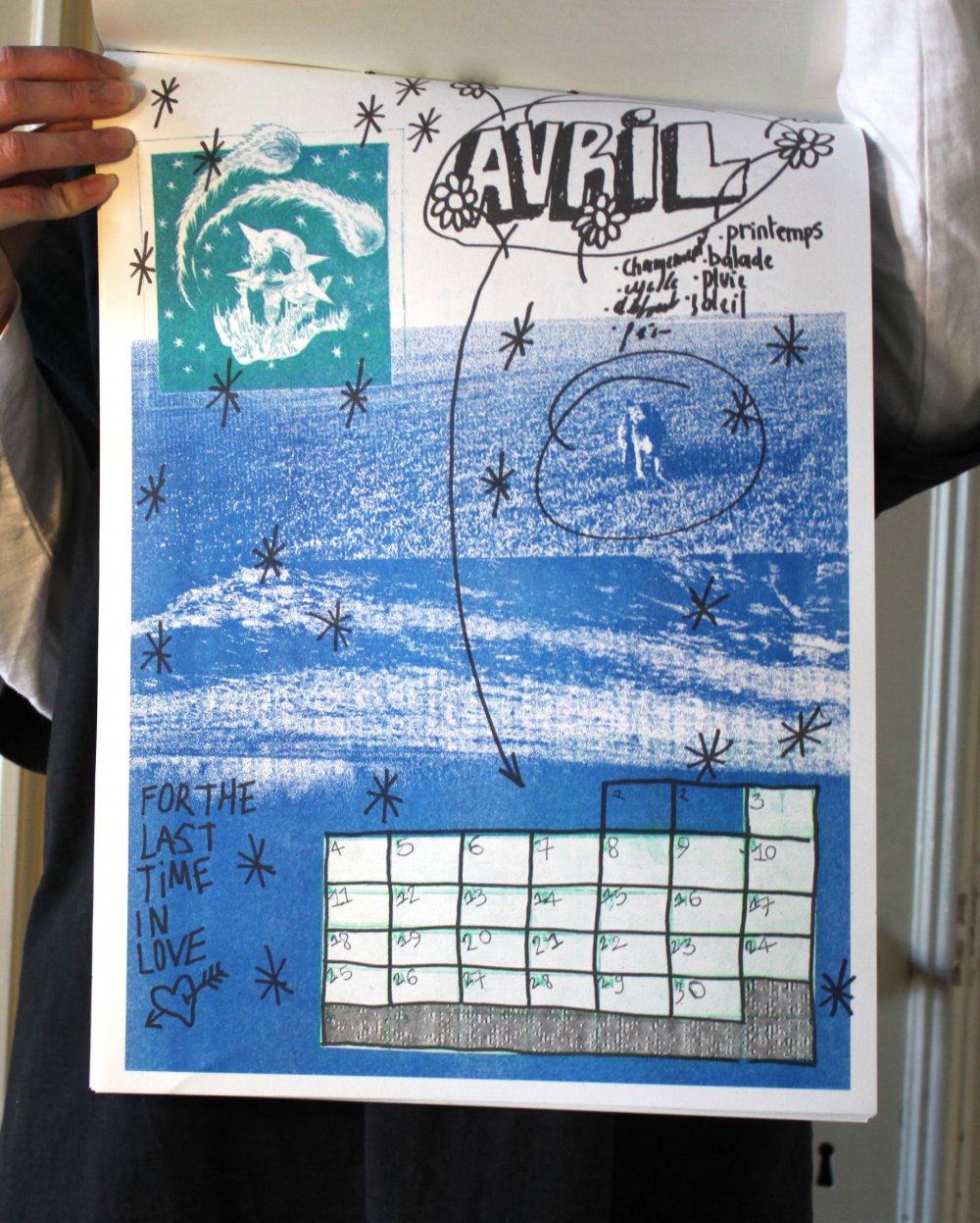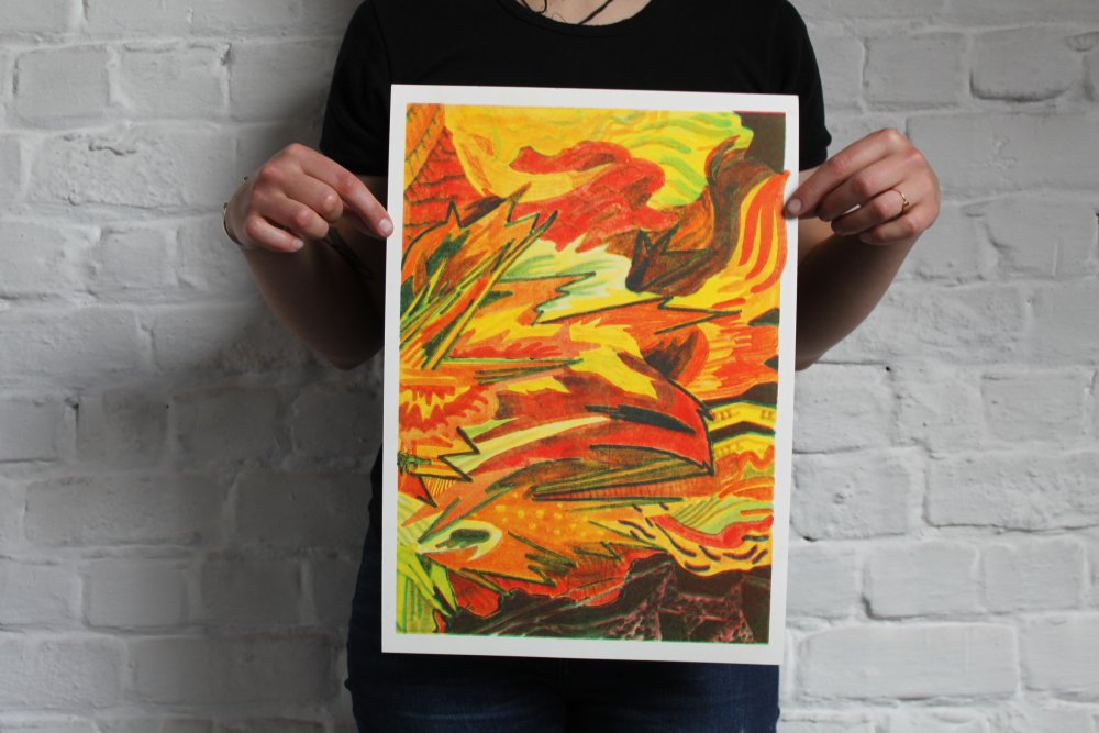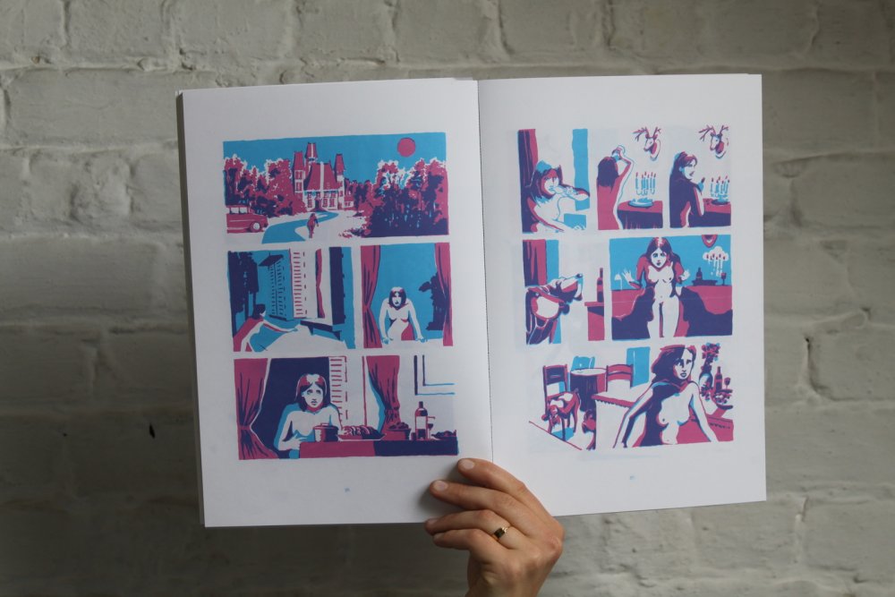 fusin sur papier, imprimé en risographie par Cyrille Aron et les éditions Bleu Velours.