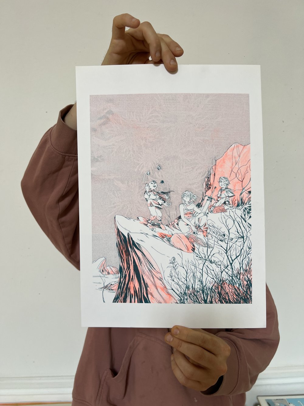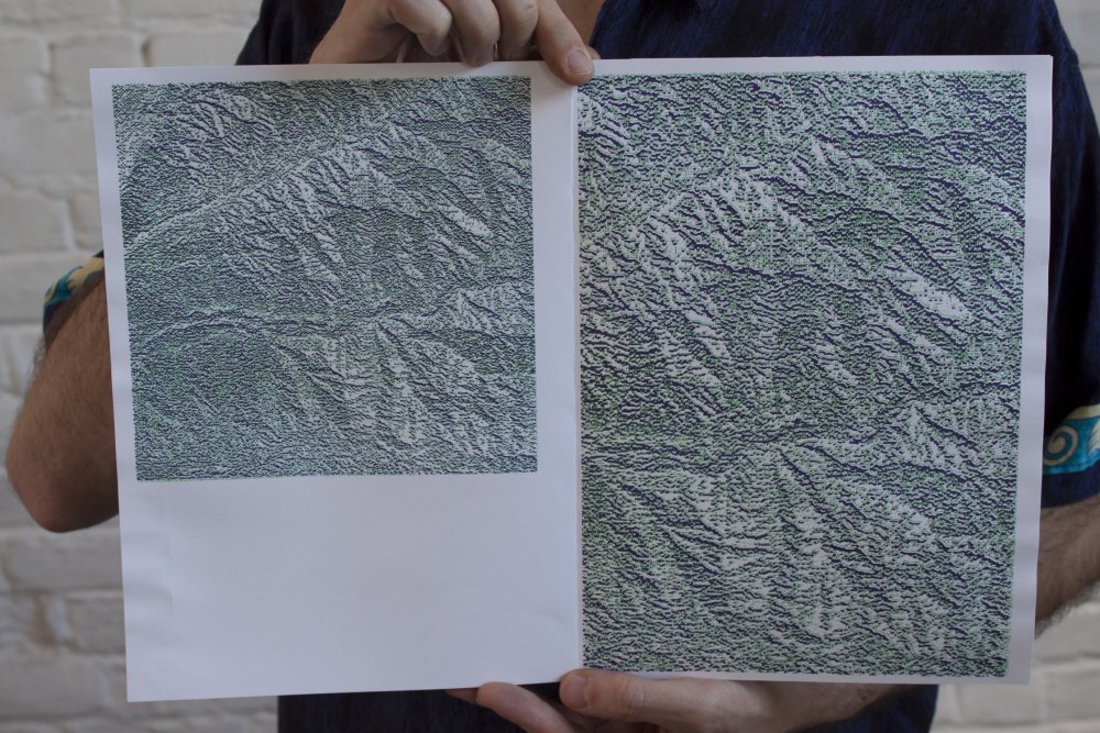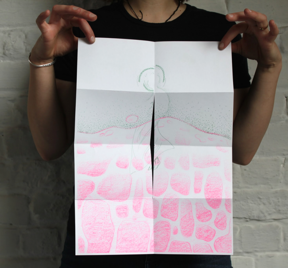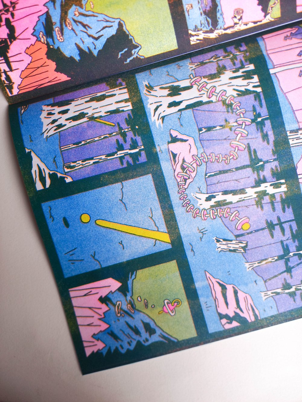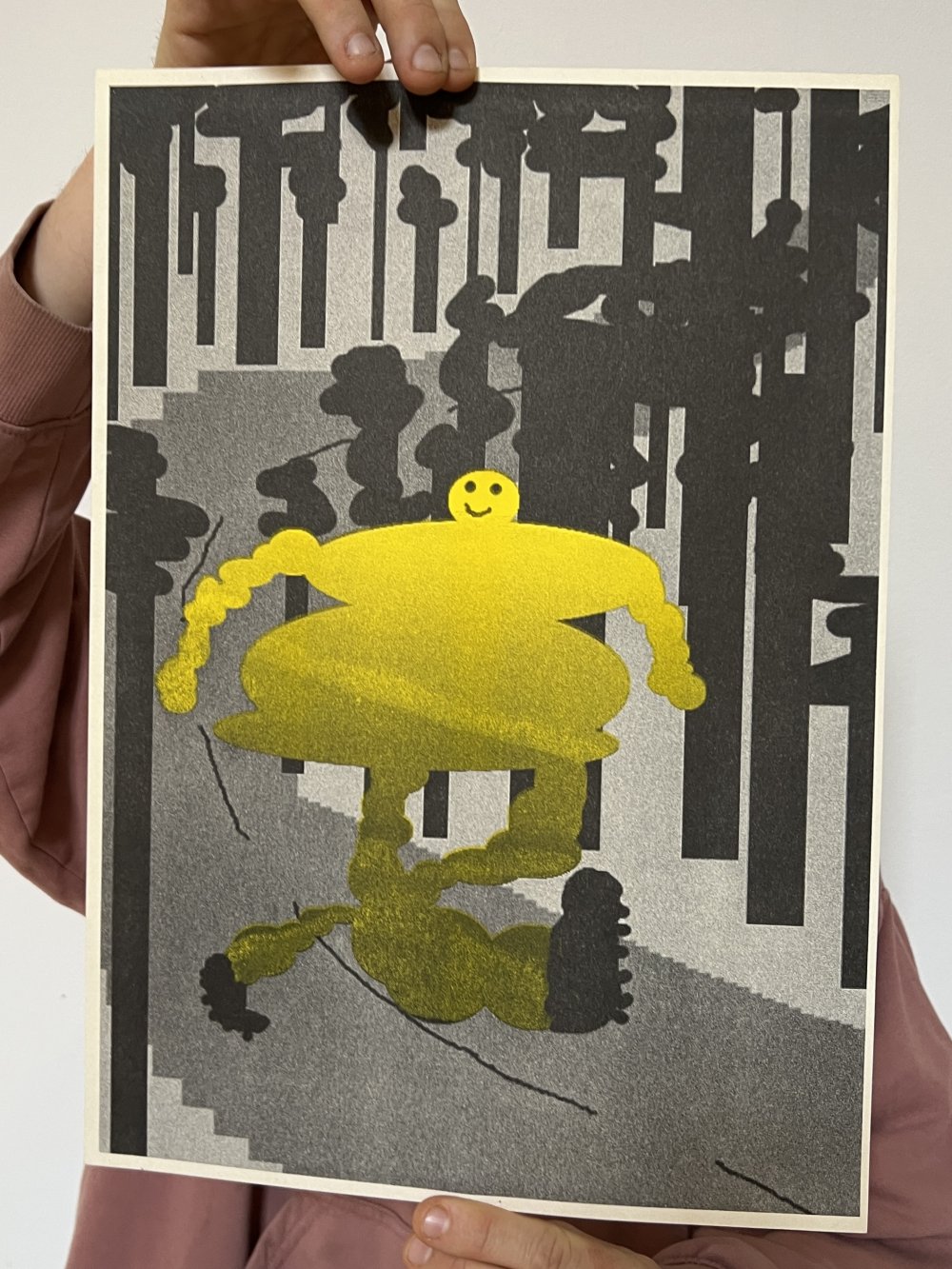 fusin sur papier, imprimé en risographie par Cyrille Aron et les éditions Bleu Velours.