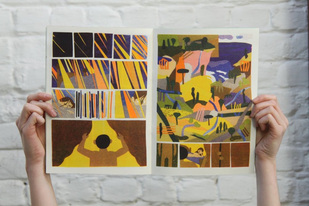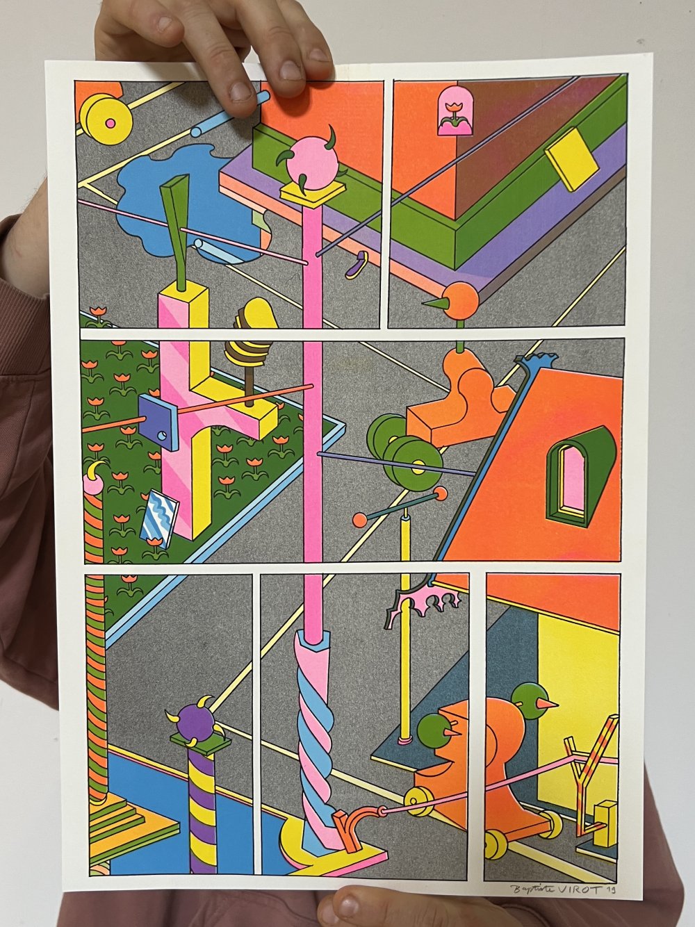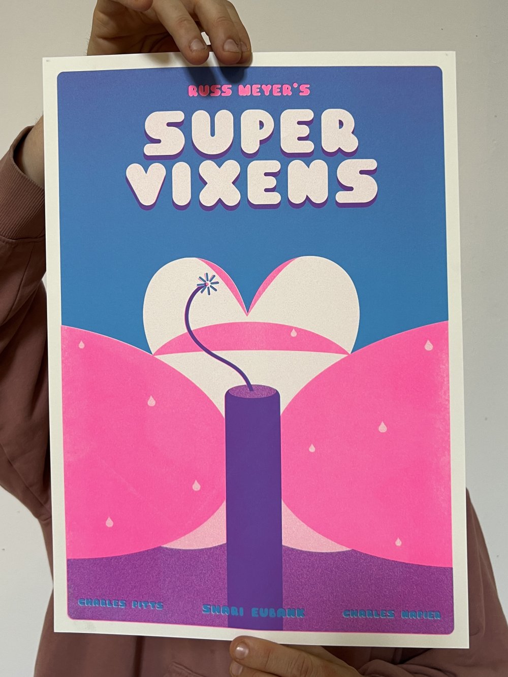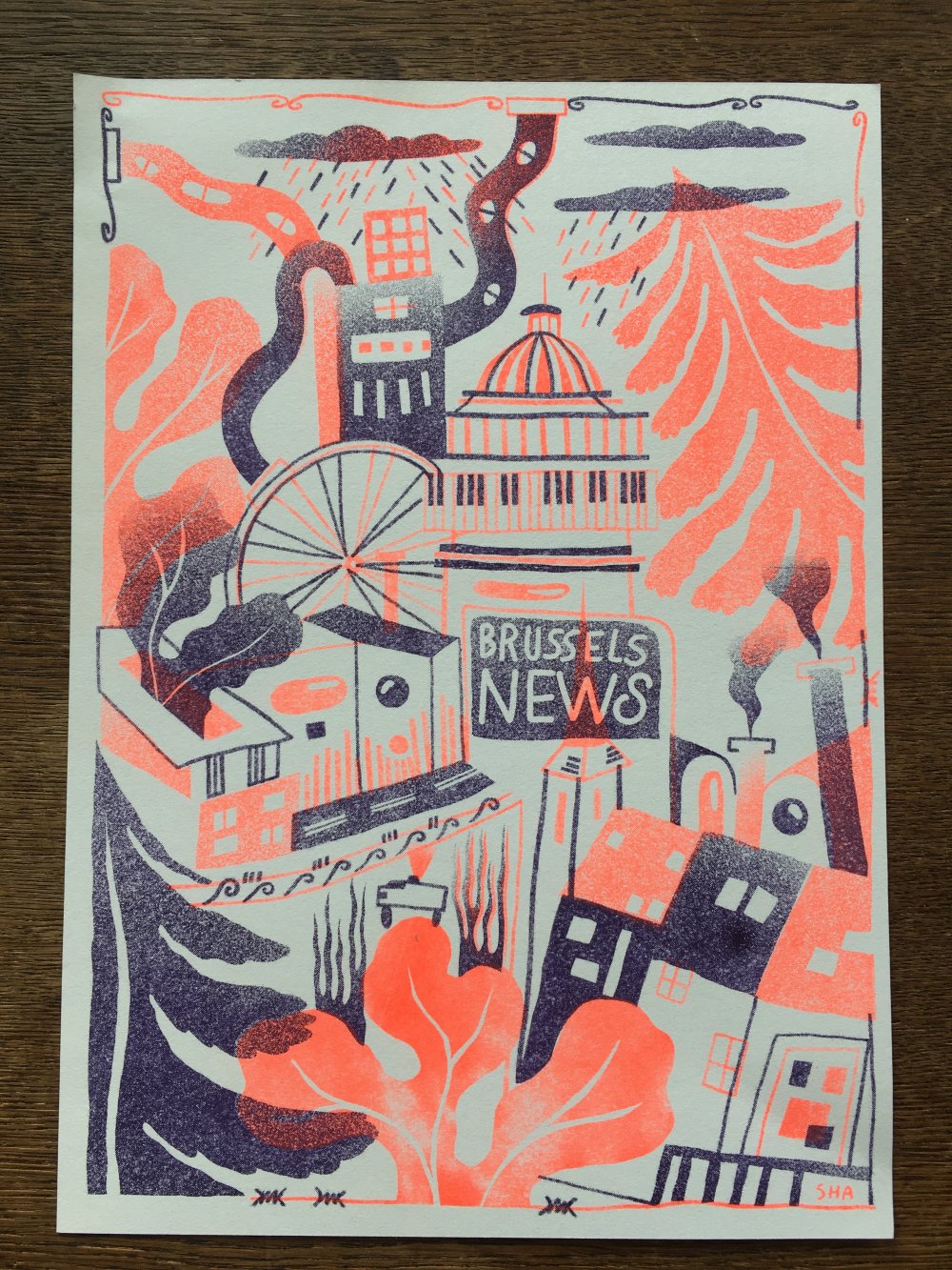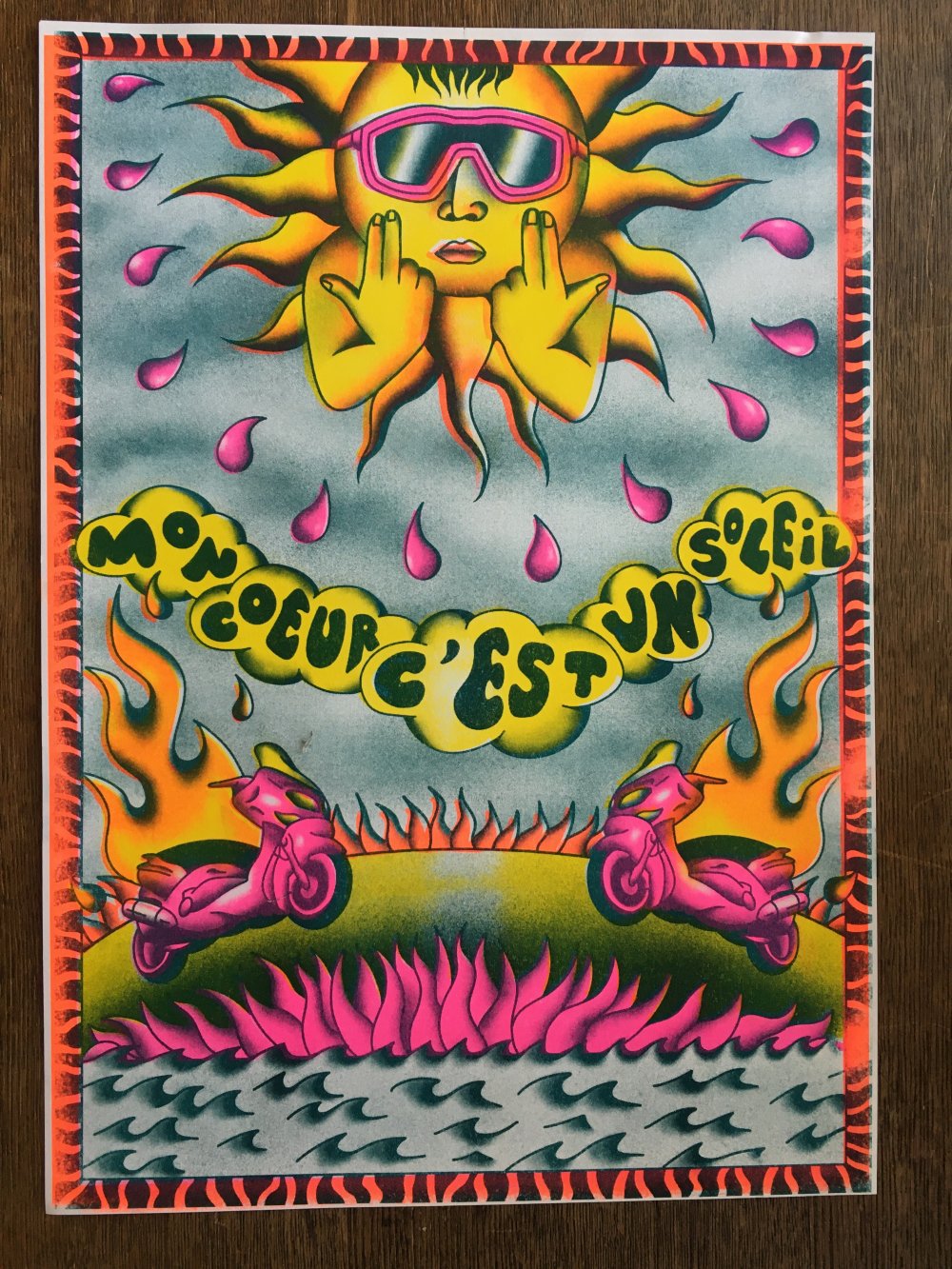 fusin sur papier, imprimé en risographie par Cyrille Aron et les éditions Bleu Velours.
