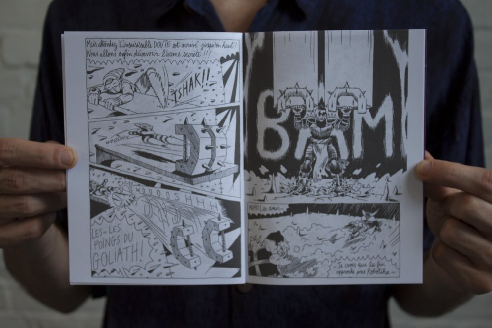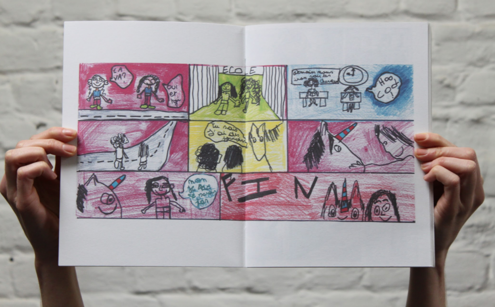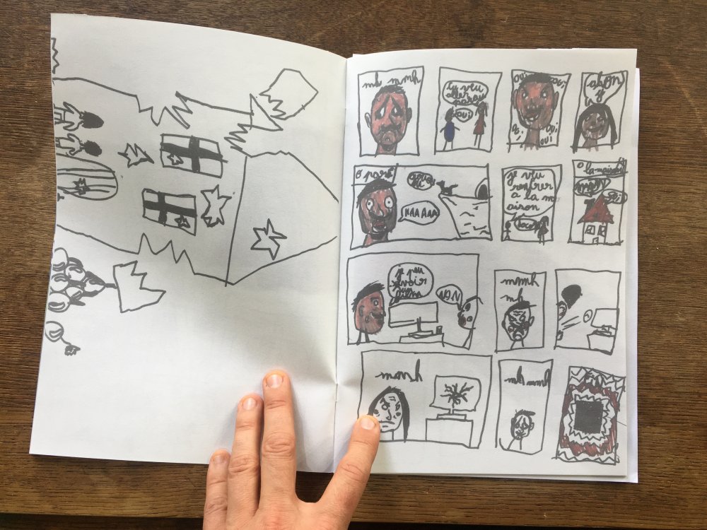 Une BD d'action réalisée avec une classe d'enfant et animé par Félix Laurent.