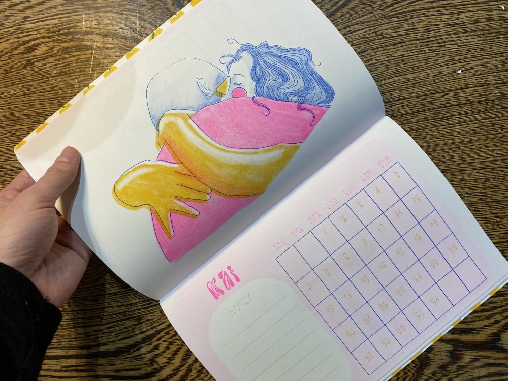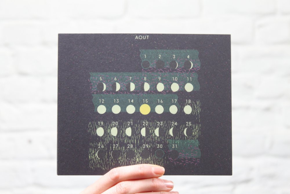 Un calendrier 2026 qui met en valeur les signes astrologiques, accompagnés à chaque mois par un poème soignesement récoluté.