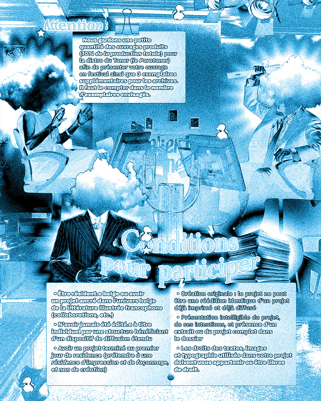 ⚡️ Les artistes séléctionné·es disposent chacun·e de 3 semaines pour imprimer et façonner un projet de littérature illustrée ainsi que pour organiser une exposition temporaire & une soirée de lancement.