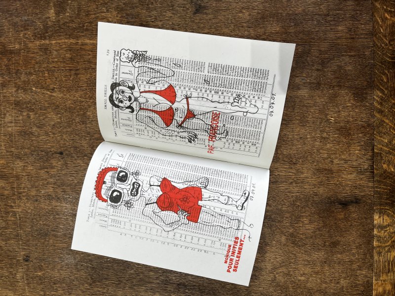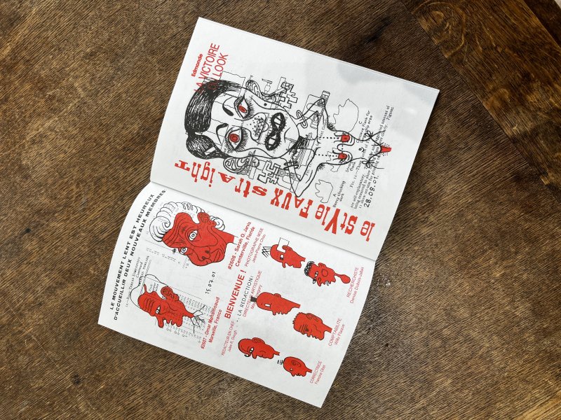 Elle avait le fanzine imprimé non coupé de l’époque et une partie des dessins: la couche de noir, mais pas la couche de rouge, qui était issue de collages de magazines ELLE de l’époque. Cette micro-résidence est donc devenue une quête de magazines pour refaire des collages de texte, mais aussi une geekerie sur le Photoshop gratuit Photopea.com pour récupérer la couche de rouge.