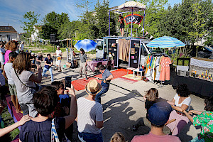 La Famille Gribiche est collectif animatoire de 4 artistes qui propose un spectacle forain (grande forme) et des animations (petites formes) qui s'appuient sur un état d’esprit similaire (convivialité, partage, famille, forain, fête…).