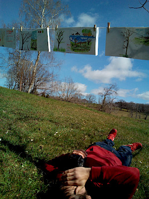 En 2020, ils étaient déjà allés passer plusieurs mois dans le Haut-Ségala, aux confins du Lot là où les vaches sont plus nombreuses que les habitants. Ils ont développé leurs pratiques artistiques, rencontré les agriculteurs, enregistré les bruits de la forêt, invité d’autres artistes pour éveiller le regard des habitants. Ils ont partagé leurs techniques et processus de création, ainsi que de beaux moments de vie commune.