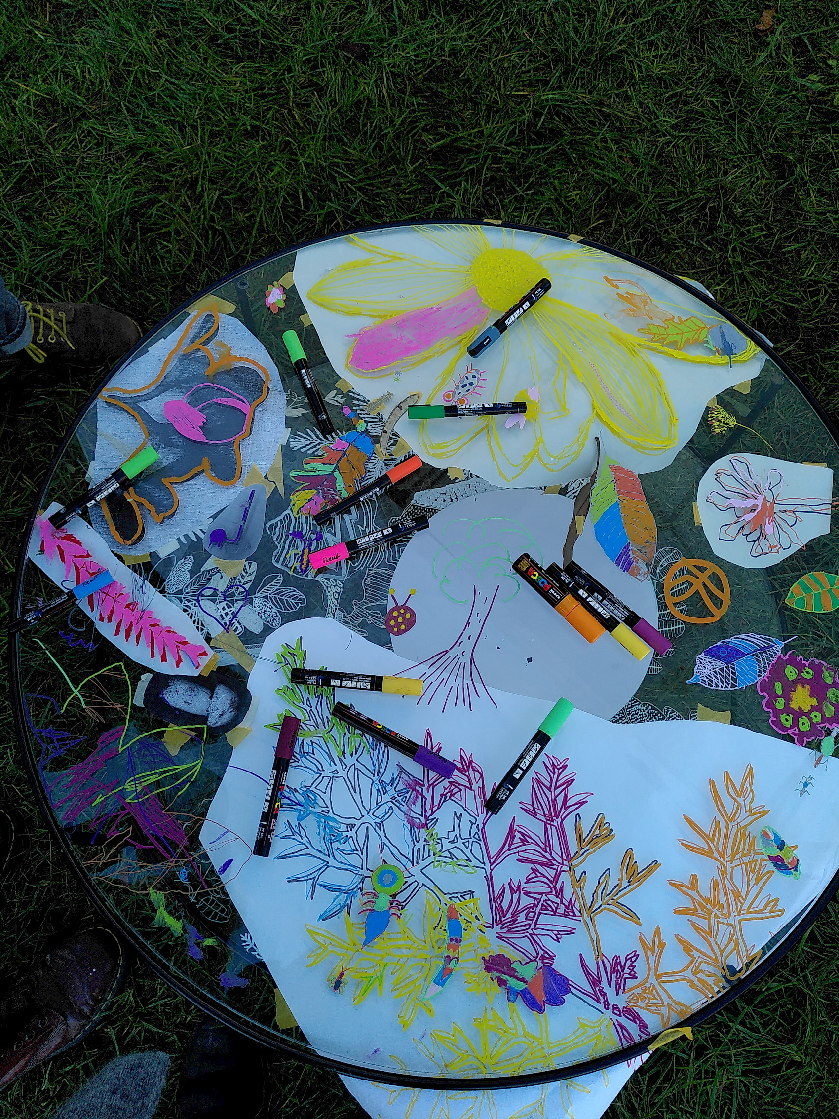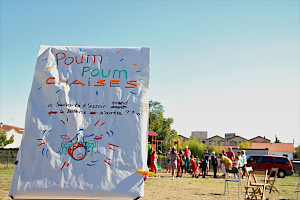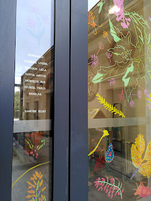 De septembre à décembre 2022, Sophie Vialettes et Emilie Fenouillat (Oh la méduse!) ont été invitées à créer une oeuvre collective sur le Chateau du Burck à Mérignac avec les habitants du quartier. Observer le Burck à la loupe, pour en dessiner collectivement les paysages découverts et les tout-petits habitants rencontrés en promenade... Le château a été recouvert de dessins multicolores pour la plus grande joie des professionnelles du centre social, et des artistes dessinateur.ice.s !