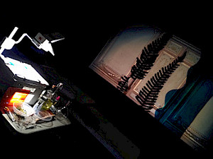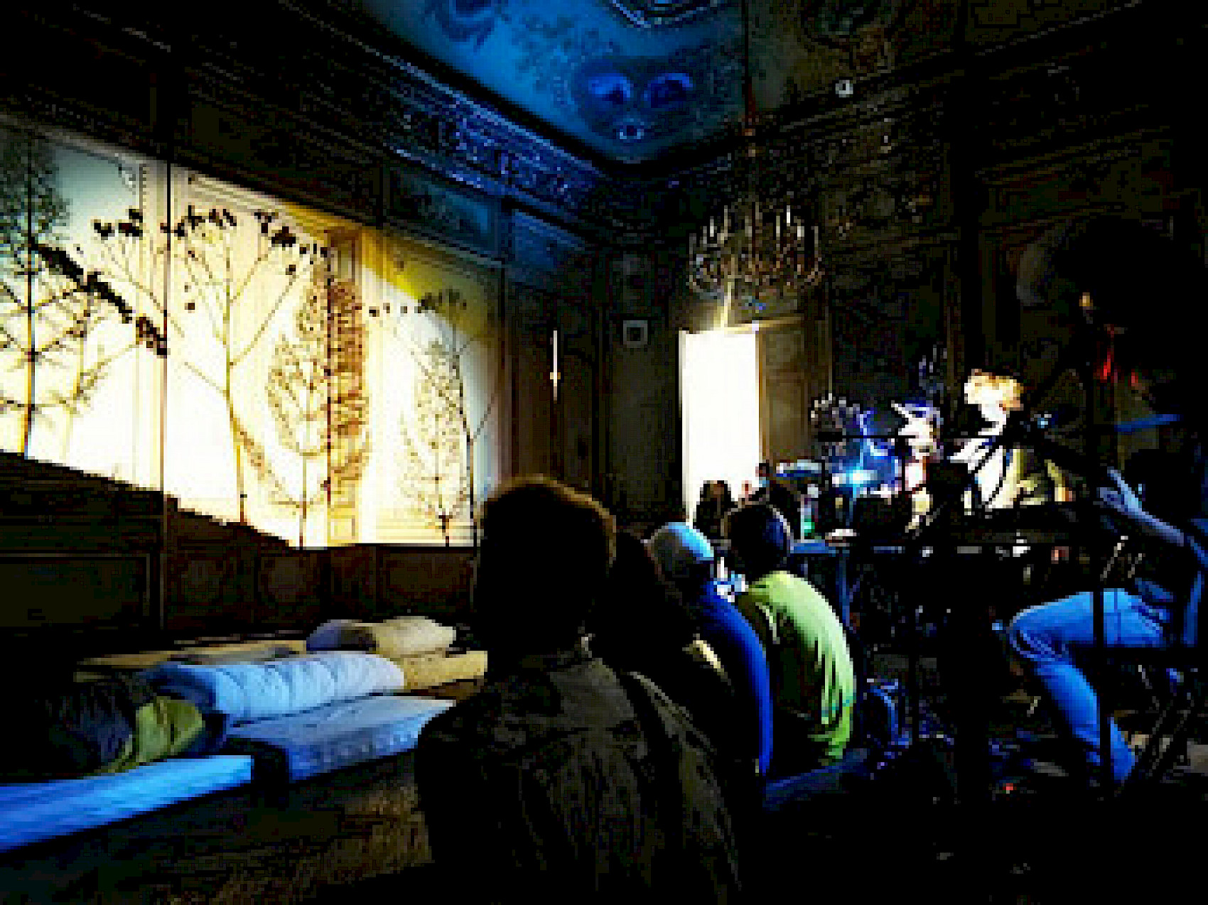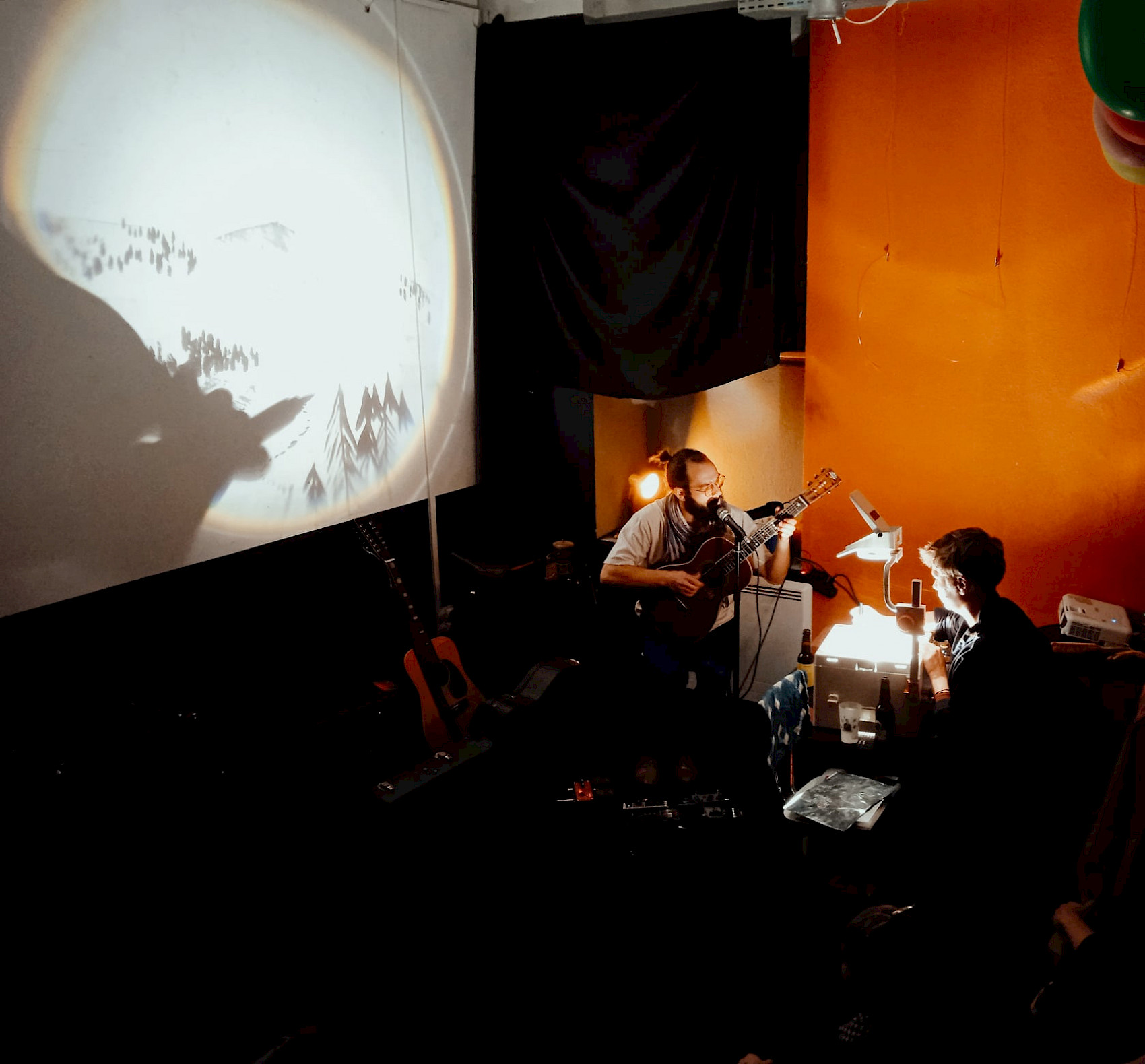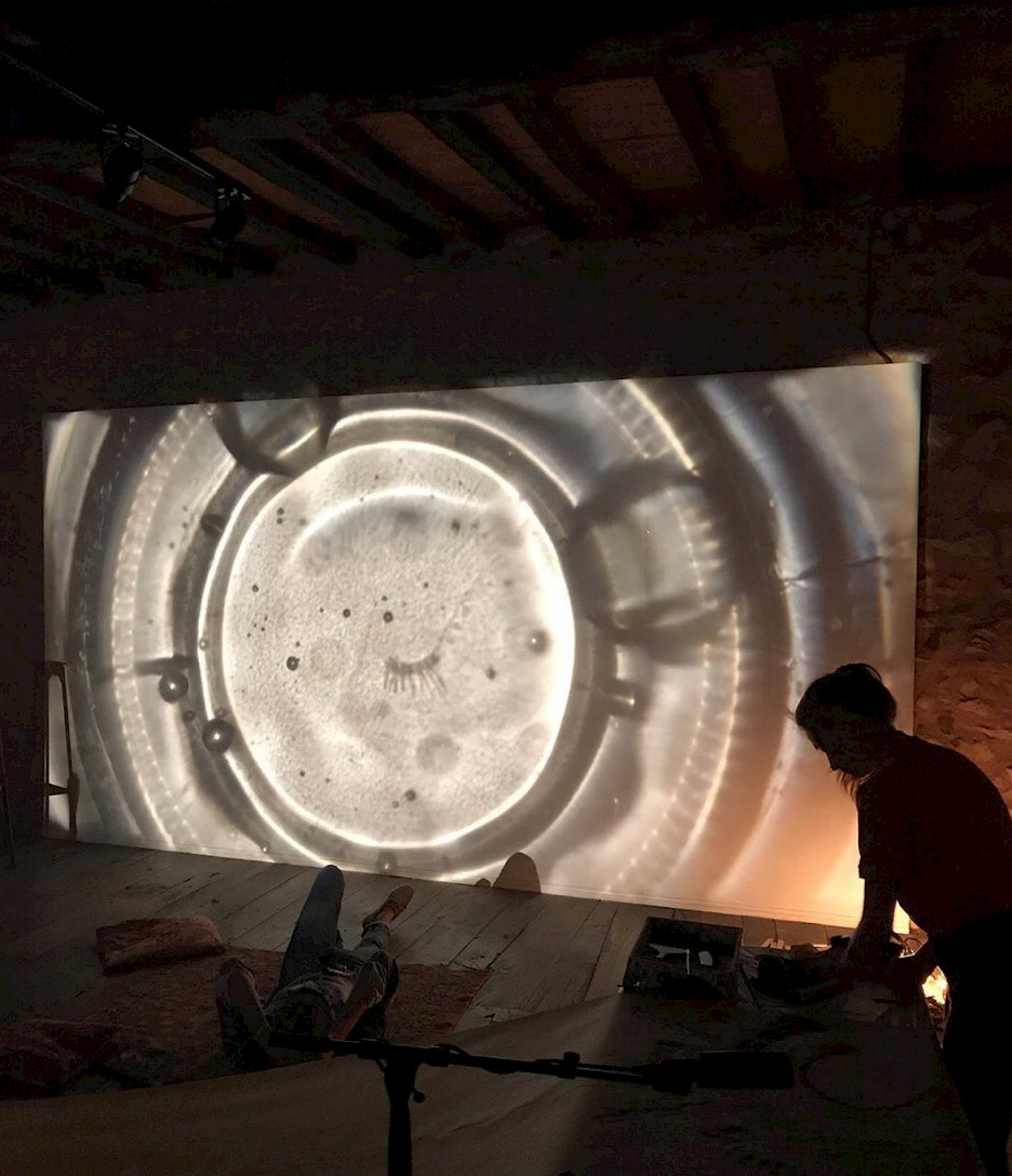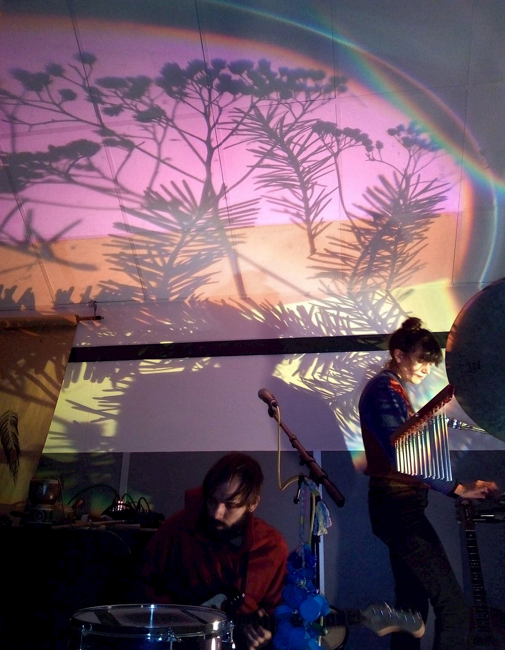 Au gré des sons, des images et des textures créés en direct avec un haut degré de poésie, il.elle.s nous font découvrir leur “cinéma fait maison”. Il.elle.s inventent et construisent un monde onirique fait de plantes toutes petites qui se transforment en arbres, de montagnes qui poussent au sons des cloches d’alpage et d’encre qui dessine en temps réel des forêts dans un environnement musical foisonnant.