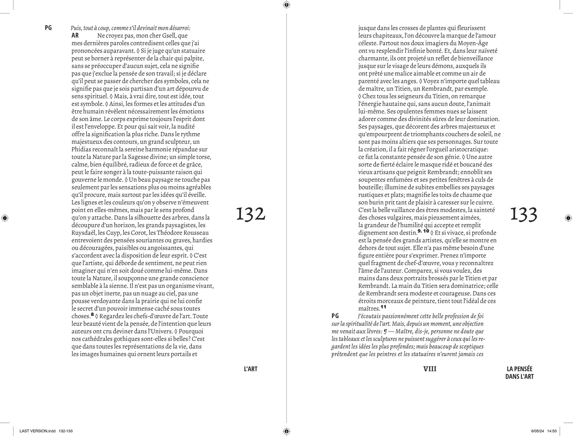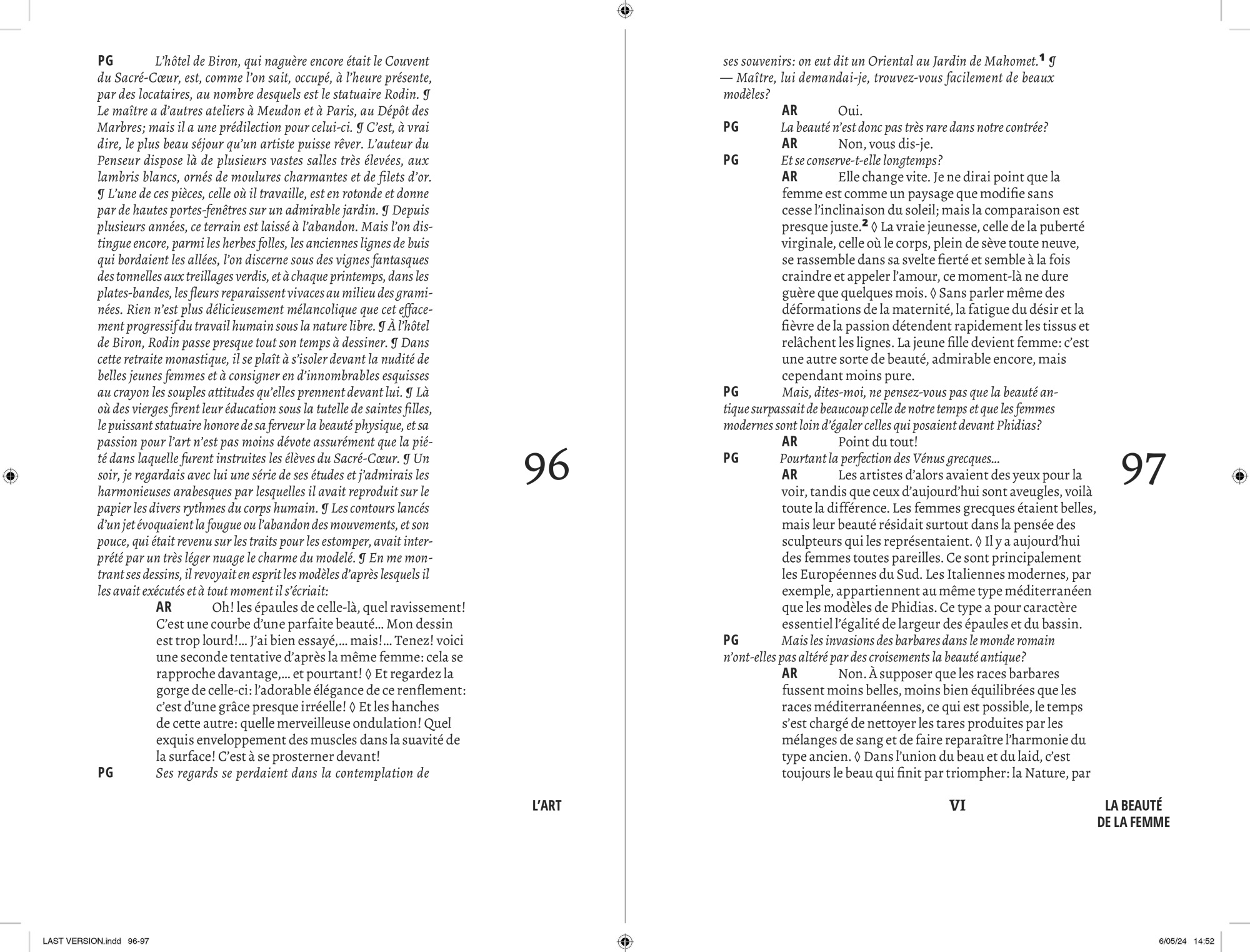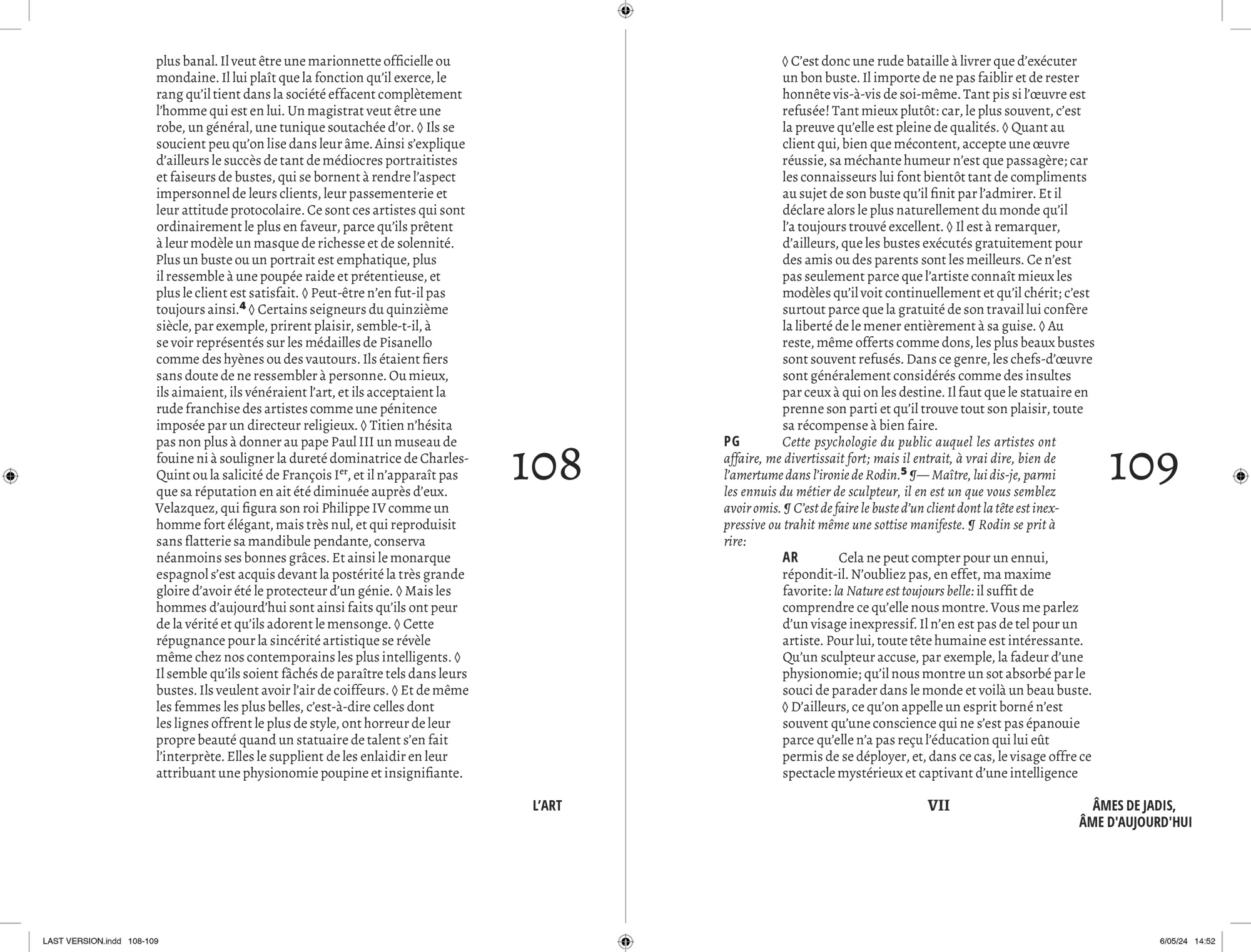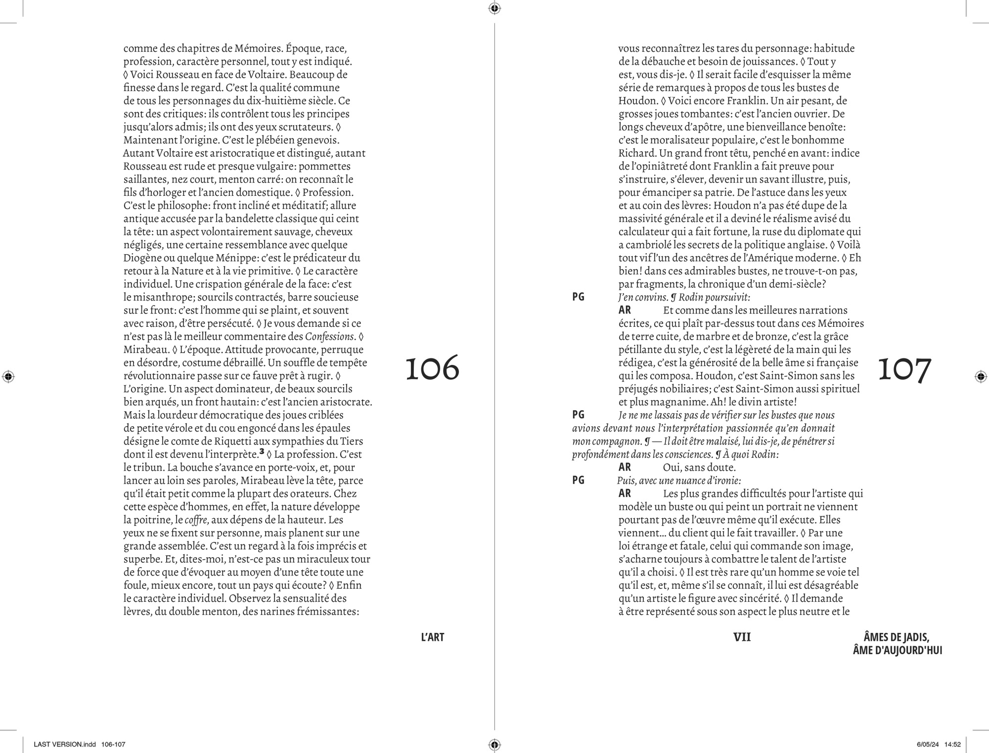 Comme pour chaque projet éditorial, j’entame une « enquête » typographique pour opérer les meilleurs choix que m’offre l’Histoire. Au cours de cette recherche, je suis tombé sur le travail que Lorène Ceccon a réalisé durant son Erasmus à la Cambre (2014). La numérisation du caractère Antiqua issu des casses de l’ÉnsAV, dessiné par le peintre Georges Lemmen, commandé par Henry Van de Velde, ancien directeur de la Cambre et proche de Walter Gropius, directeur du Bauhaus. J’apprends par la suite que ce caractère, a été commandé pour mettre en page le célèbre « Ainsi parlait Zarathustra » de Nietzsche — Also Sprach Zarathustra — en 1908 . L’imprimerie de l’ÉnsAV héberge aussi le Futura, caractère linéale géométrique conçue par Paul Renner, entre 1924 et 1927, pour la fonderie Bauer. Elle participe avec les productions de Jan Tschichold, à la modernité contemporaine du Bauhaus. C’est avec ces deux caractères que j’entamerais la mise en forme du texte de Friedrich Nietzsche.