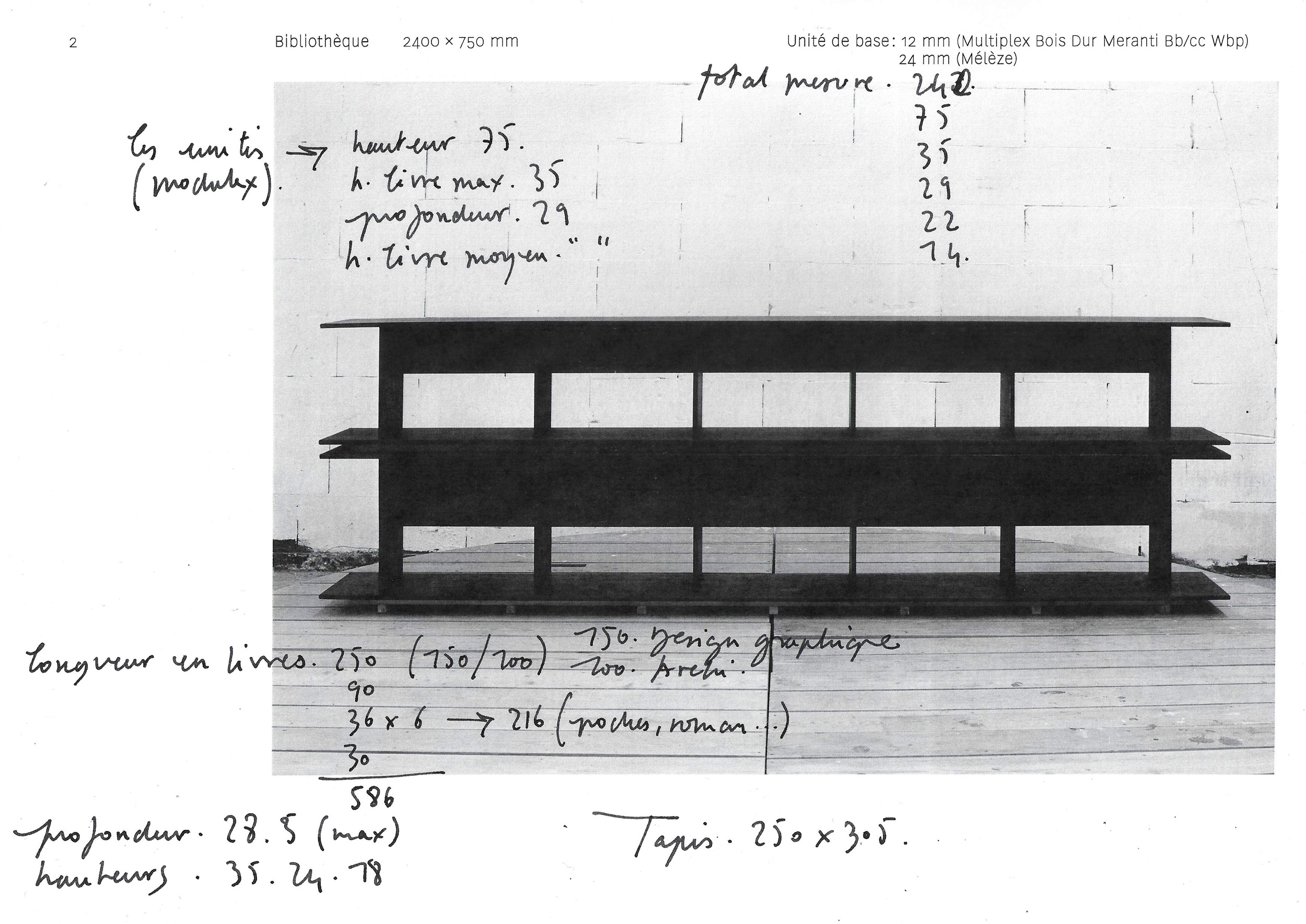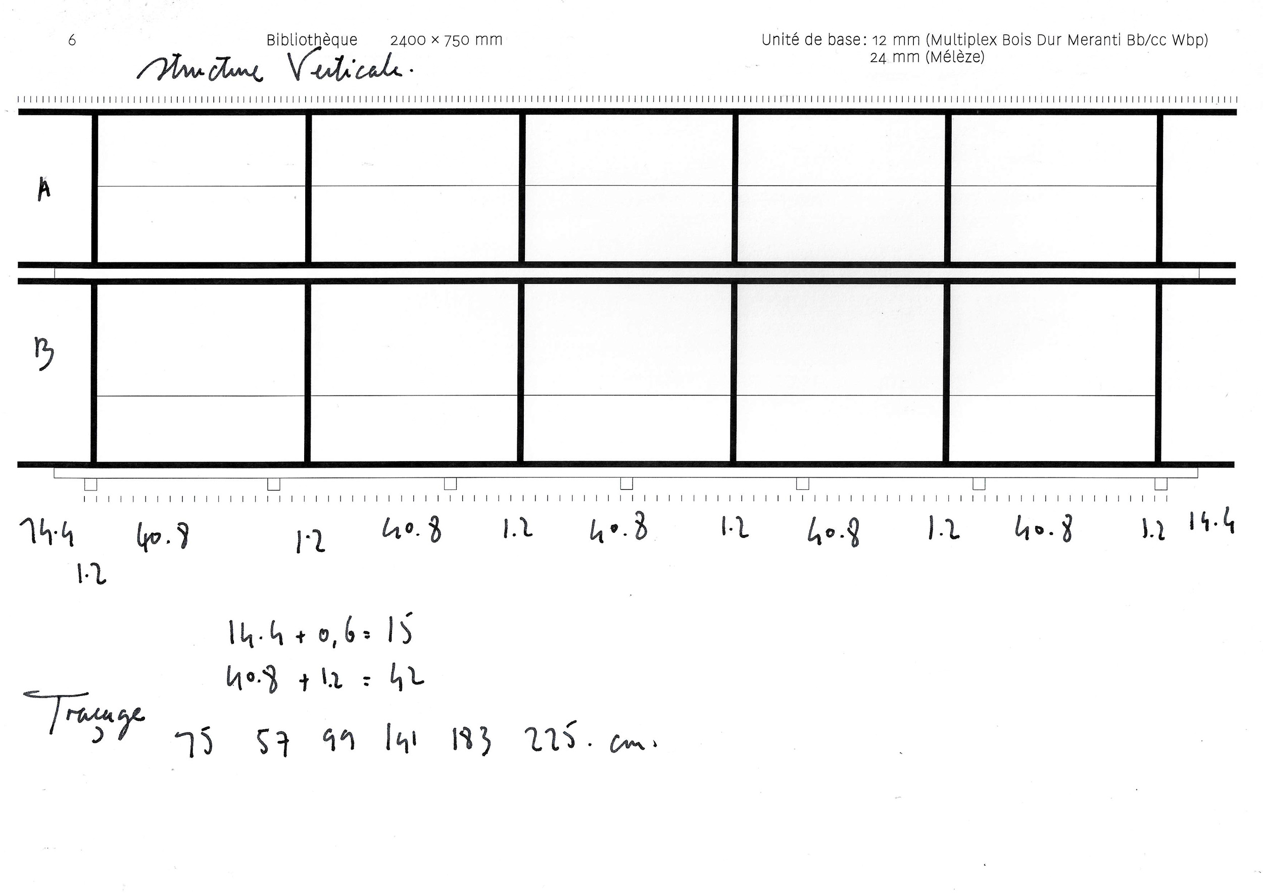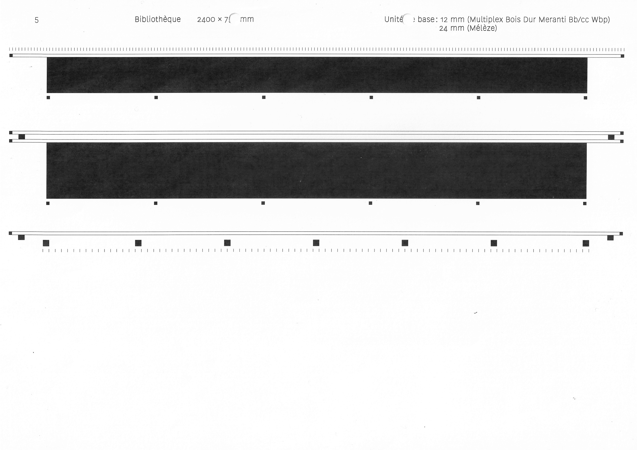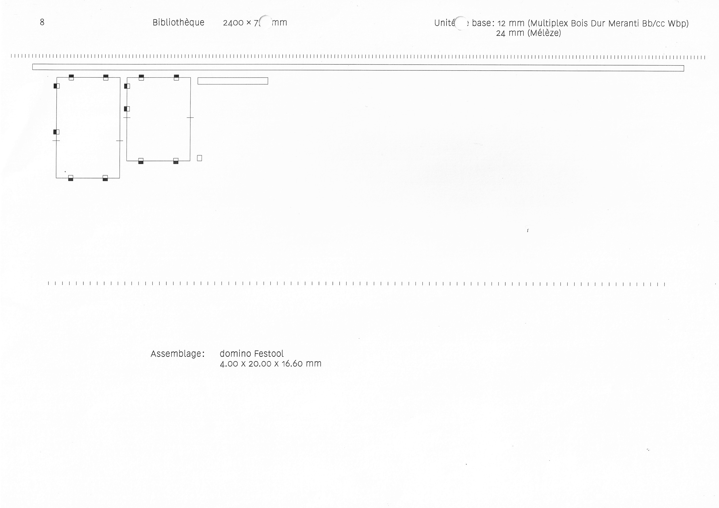 Bibliothèque 2400 × 750 × 290 mm — fabrication